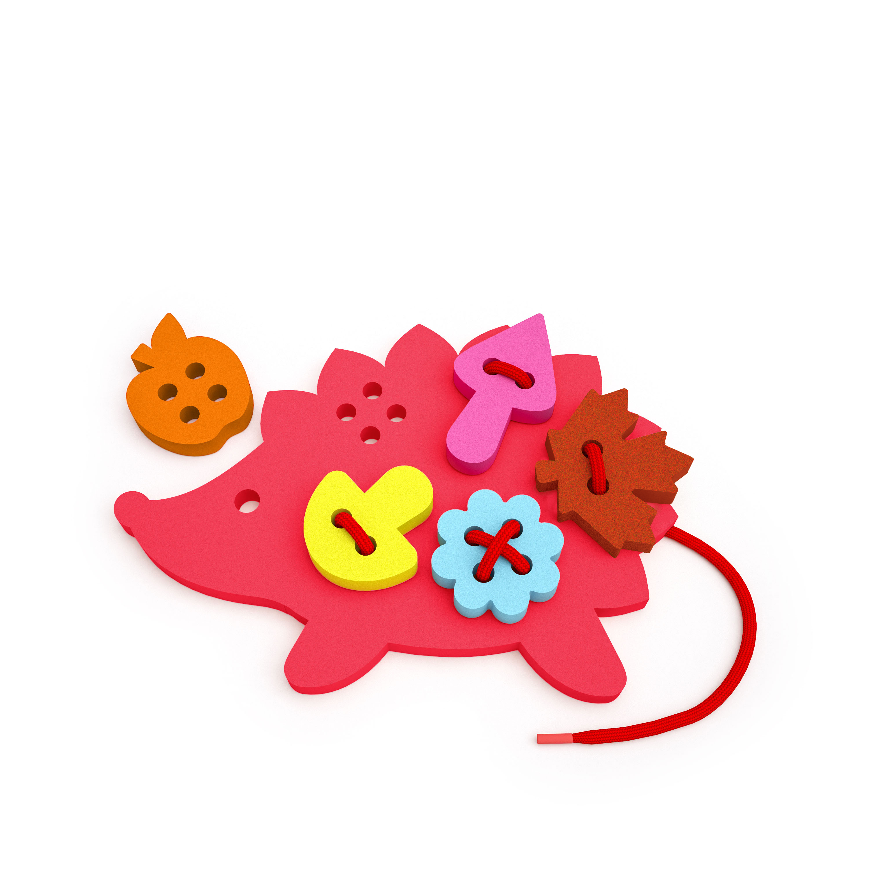Яркая и занимательная игра-шнуровка для малышей развивает мелкую моторику, координацию движения рук, внимание и усидчивость, аккуратность. Шнуровка выполнена из мягкого и яркого материала ЭВА. Элементы игры имеют крупные отверстия по центру каждой фигурки для того, чтобы ребенку удобно было нанизывать их на шнурок и пришнуровывать к основе.