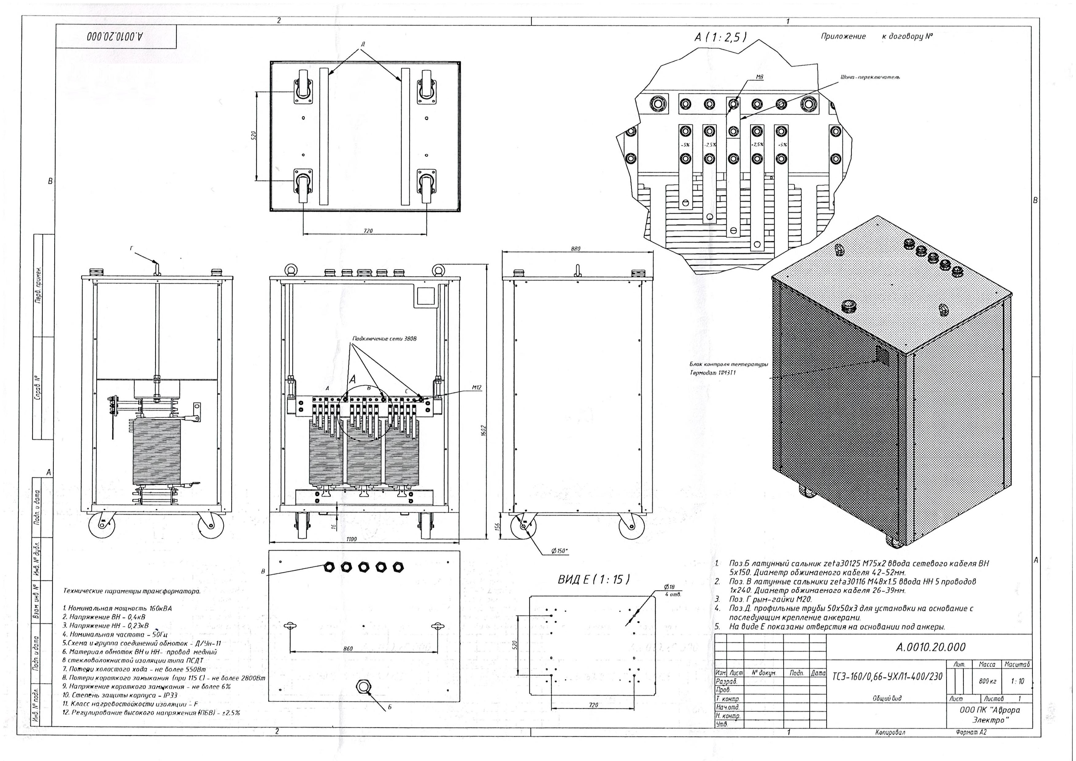 Вес трансформатора: 800 кг