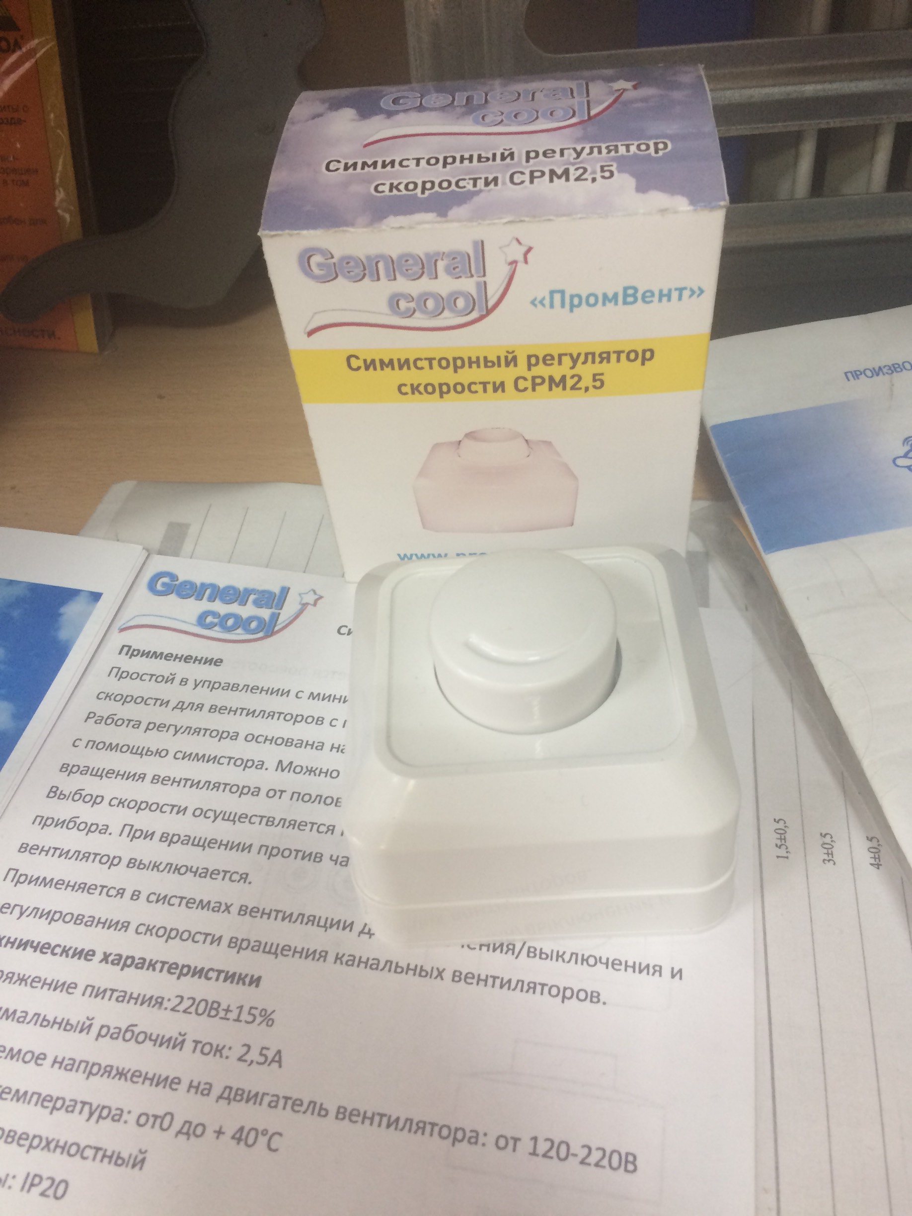 Симисторный регулятор скорости СРМ-2,5. Миниатьрный, простой в управлении регулятор скорости для вентиляторов с питанием 220В. Работа регулятора основана на изменении выходного напряжения с помощью симистора в пределах от 120В до 220В. Можно задавать регулировать скорость вращения вентилятора от половины до максимального значения. При заказе от 10 шт. доставка до транспортной компании бесплатно. Для магазинов и дилеров особые условия. Не разбирать, не бросать, не мочить. Актуальные цены и иная продукция на нашем сайте promvent. net