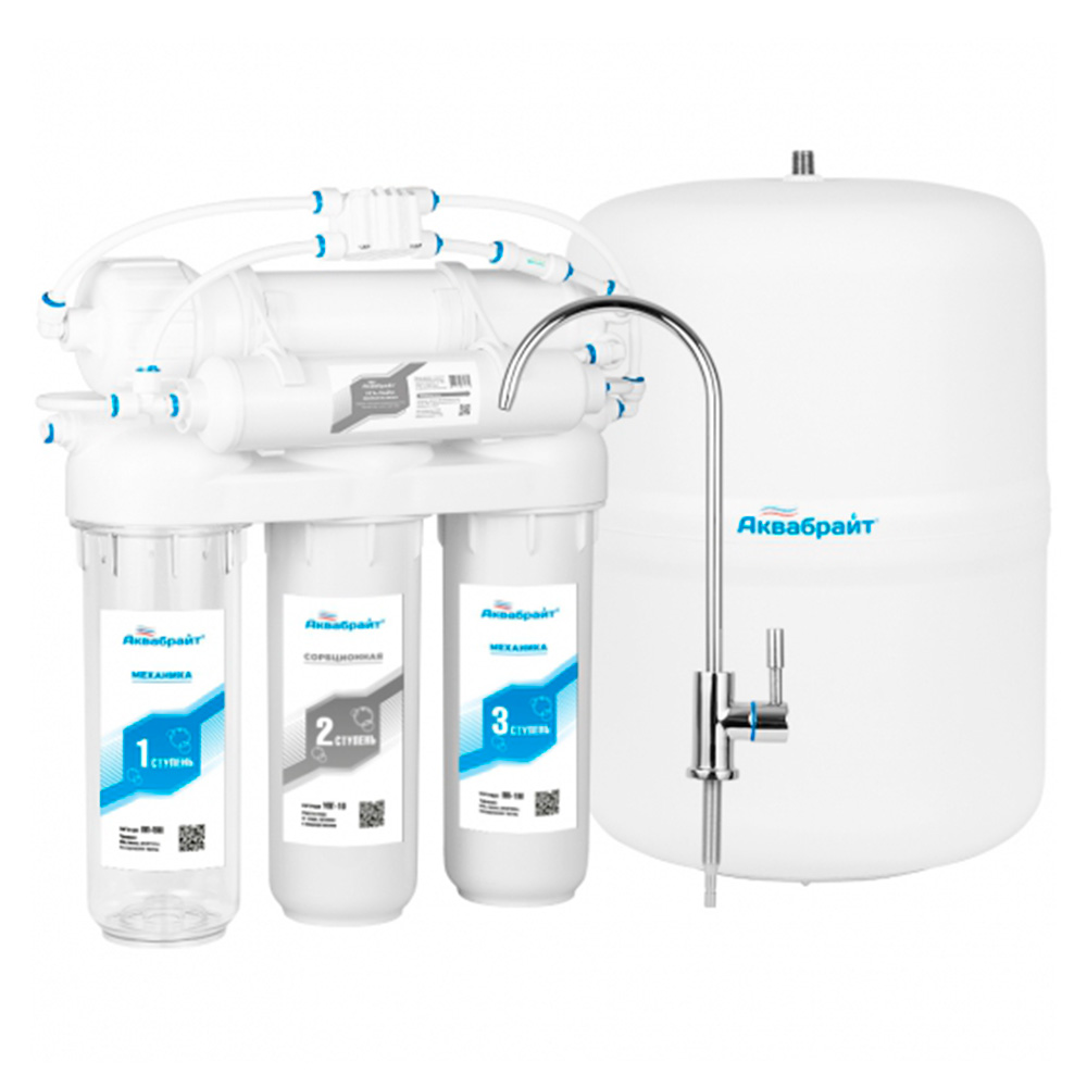 Фильтр предназначен для глубокой очистки питьевой воды. Обратноосмотическая мембрана удаляет частицы до 0,0001 мкм.