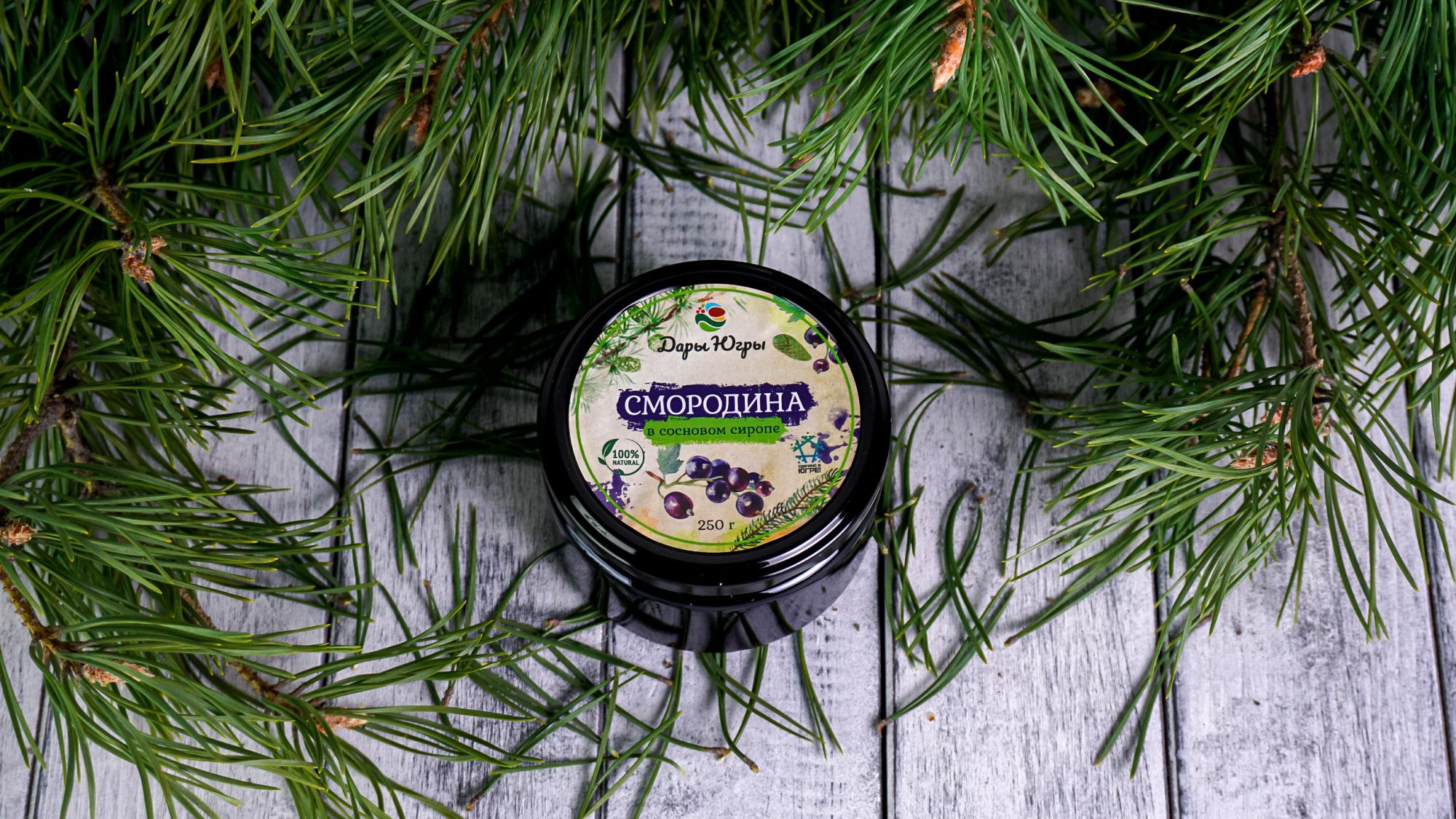Смородина лесная - дикорастущая, в сосновом сиропе из молодых сосновых шишек, от компании Регион-К "Дары Югры". Место сбора дикоросов Ханты-Мансийский автономный округ - Югра. Состав: сосновый сироп (молодая шишка сосны, сахар, вода), смородина лесная.
