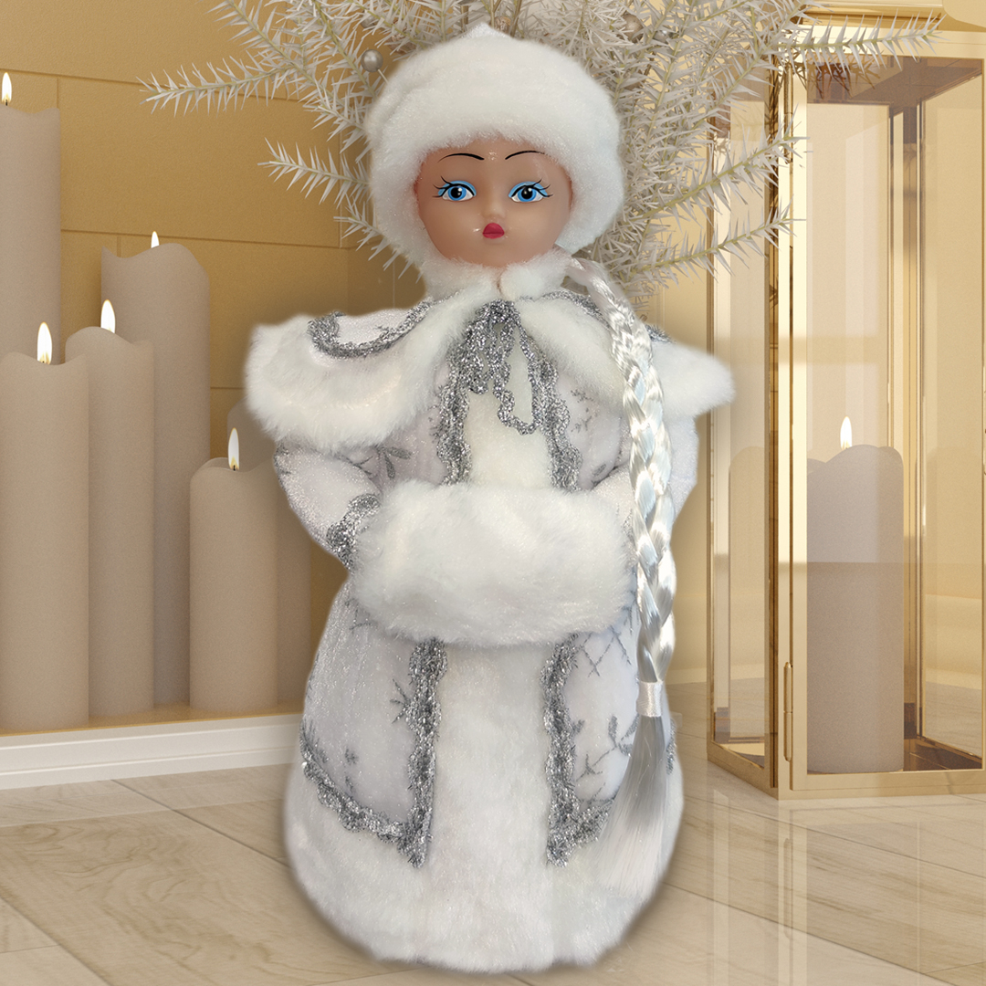 Снегурочка – кукла под ёлку. Мягконабивная кукла высотой 35 см, изготовлена из полимерных материалов по ТУ Игрушки-куклы для детей старше 3-х лет, соответствует требованиям ТР ТС 008/2011 о безопасности игрушек.