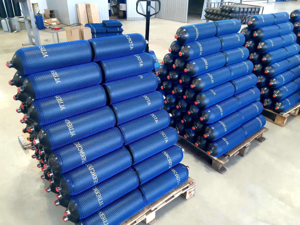 Баллоны представляют собой сосуды цилиндрической формы из углеродистой стали, в горловине которых имеется конусное отверстие с резьбой, куда устанавливается запорный вентиль. Днище баллонов по запросу заказчика может быть сферическим или плоским. Надписи на баллонах, их окраска и маркировка выполняются в соответствии с Правилами устройства и безопасной эксплуатации сосудов, работающих под давлением. Срок службы баллона - 20 лет.