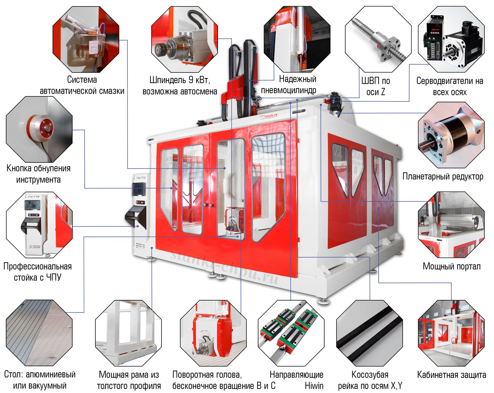 В базовой комплектации станок поставляется с системой автоматической смены инструмента и шпинделем мощностью 9 кВт!