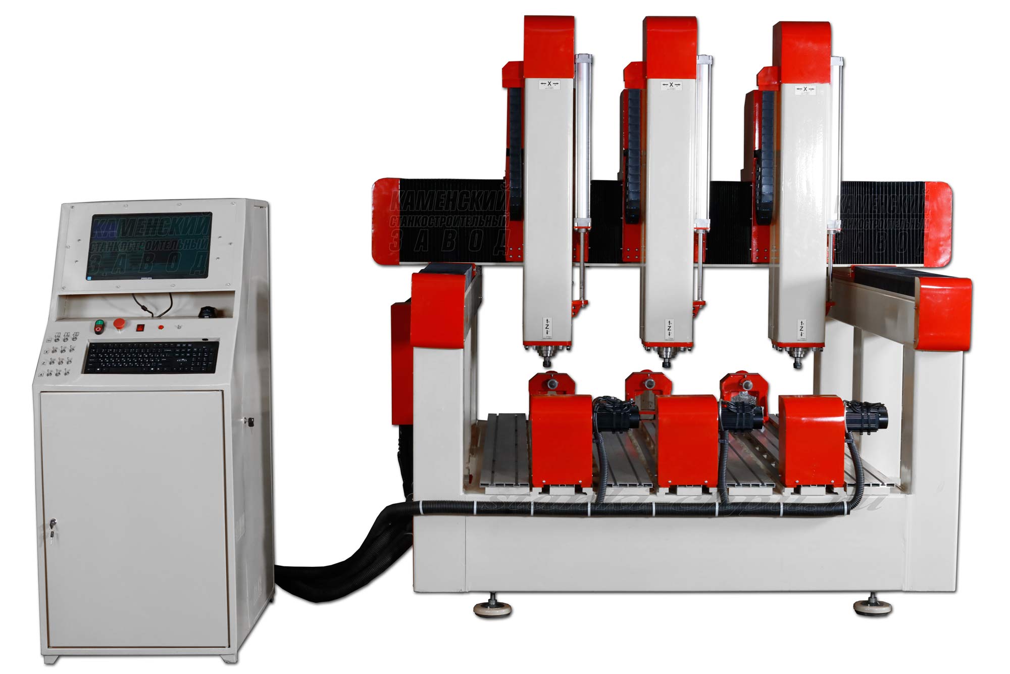 Серия трехшпиндельных фрезерных 4-осевых станков с ЧПУ 17Kx3+4 предназначена для обработки дерева, камня и разлиных металлов: алюминия, латуни, дюрали, вплоть до стали. Станок позволяет выполнять одновременную 4-х осевую обработку трех изделий круглого сечения, таких как балясины, ножки столов и стульев, ваз, шаров и подобных изделий. Также станок позволяет производить мебель, двери, иконы и прочее.