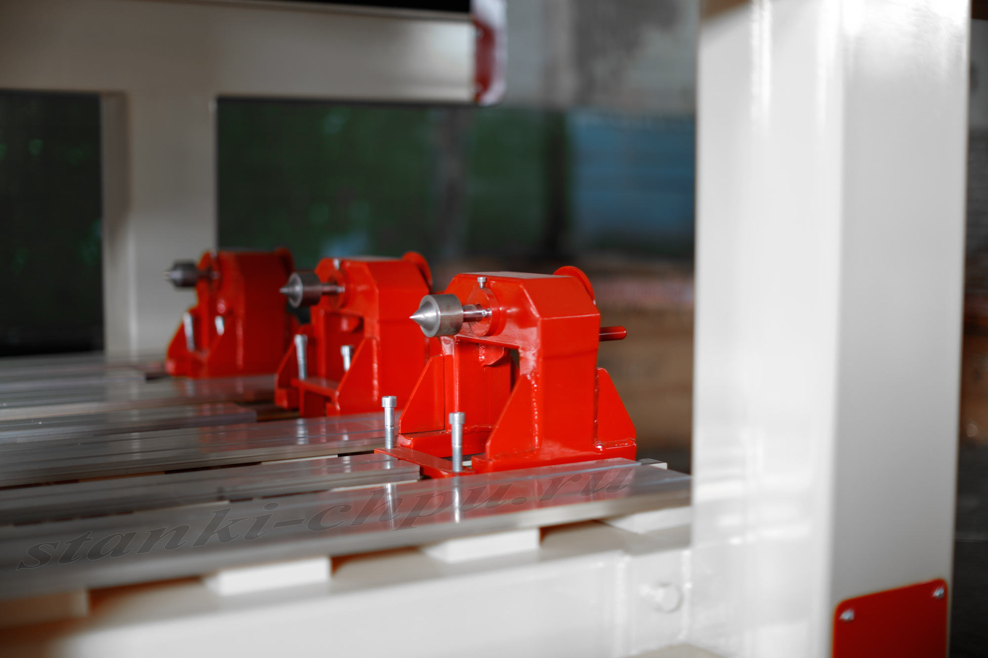 Рама станка сварная, изготовлена из стальных профильных труб. Рамы фрезеруеются на станках нашего производства. Выполнена фрезеровка площадок под направляющие, что обеспечивает повышенную точность работы станка. По оси Y используется сдвоенный привод. На станке 17Kx3+4 установлены качественные рельсовые направляющие, редукторы, систему привода, рейки и шестерни.