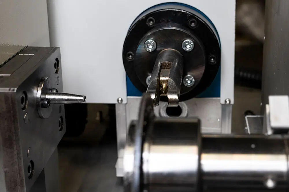Система автоматического управления позволяет производить корщетки в автоматическом режиме с минимальным участием оператора. От оператора требуется только установить диск, выбрать необходимый рецепт изготовления и нажать кнопку старта. Далее процесс изготовления щетки происходит полностью в автоматическом режиме. В составе САУ имеется контроллер Siemens, панель визуализации Weintek, 5 сервоприводов, набор сенсоров, пневматические цилиндры и другие исполнительные устройства.