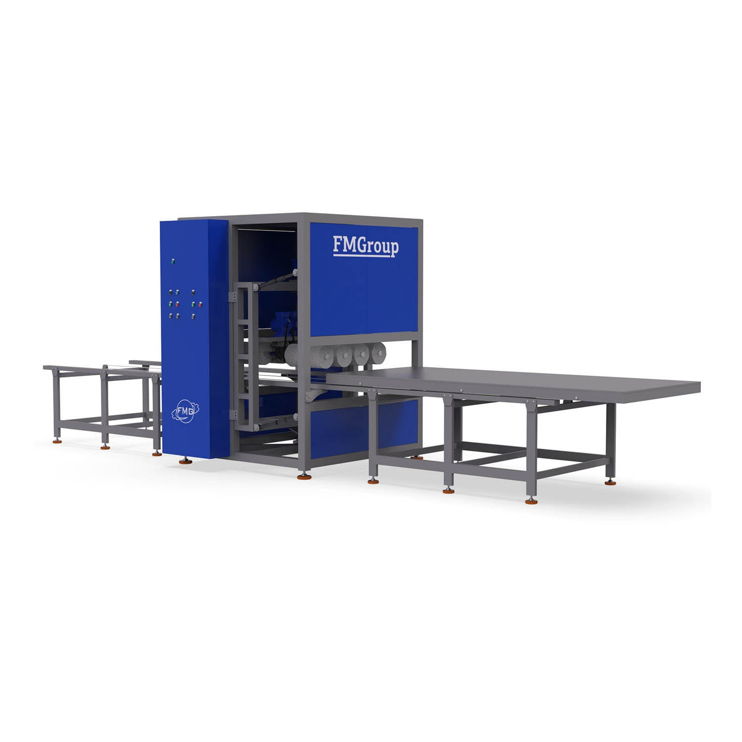 Станок полировальный состоит из подвижного стола и четырех наборных полировальными валиков, установленных на жесткую конструкцию. Валики набираются из хлопчатобумажных дисков. Они попарно вращаются в одну сторону. Сами пары вращаются встречно (в противоположные стороны). Вращение попарно по часовой и против часовой стрелки. Такая система была разработана для более высокого качества обработки поверхности. К тому же, шлифовка четырьмя валиками уменьшает количество ходов при обработке, что соответственно увеличивает производительность. Средняя производительность 100-140 квадратных метров полированной плоскости в смену (8 часов).