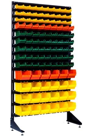 Пристенный стеллаж. Складской универсальный, с пластмассовыми ящиками (контейнерами) для складских помещений или магазинов.
