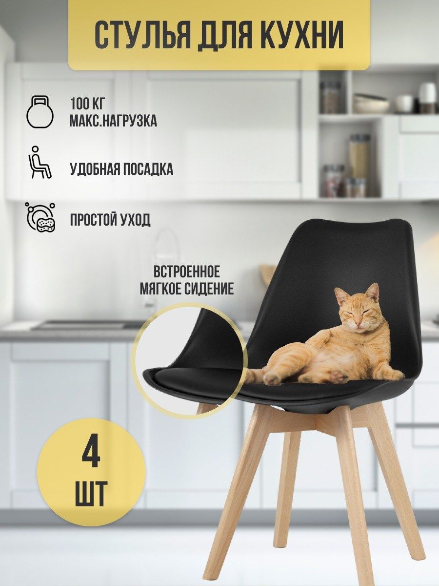 Стул для кухни | черный (4 шт.)