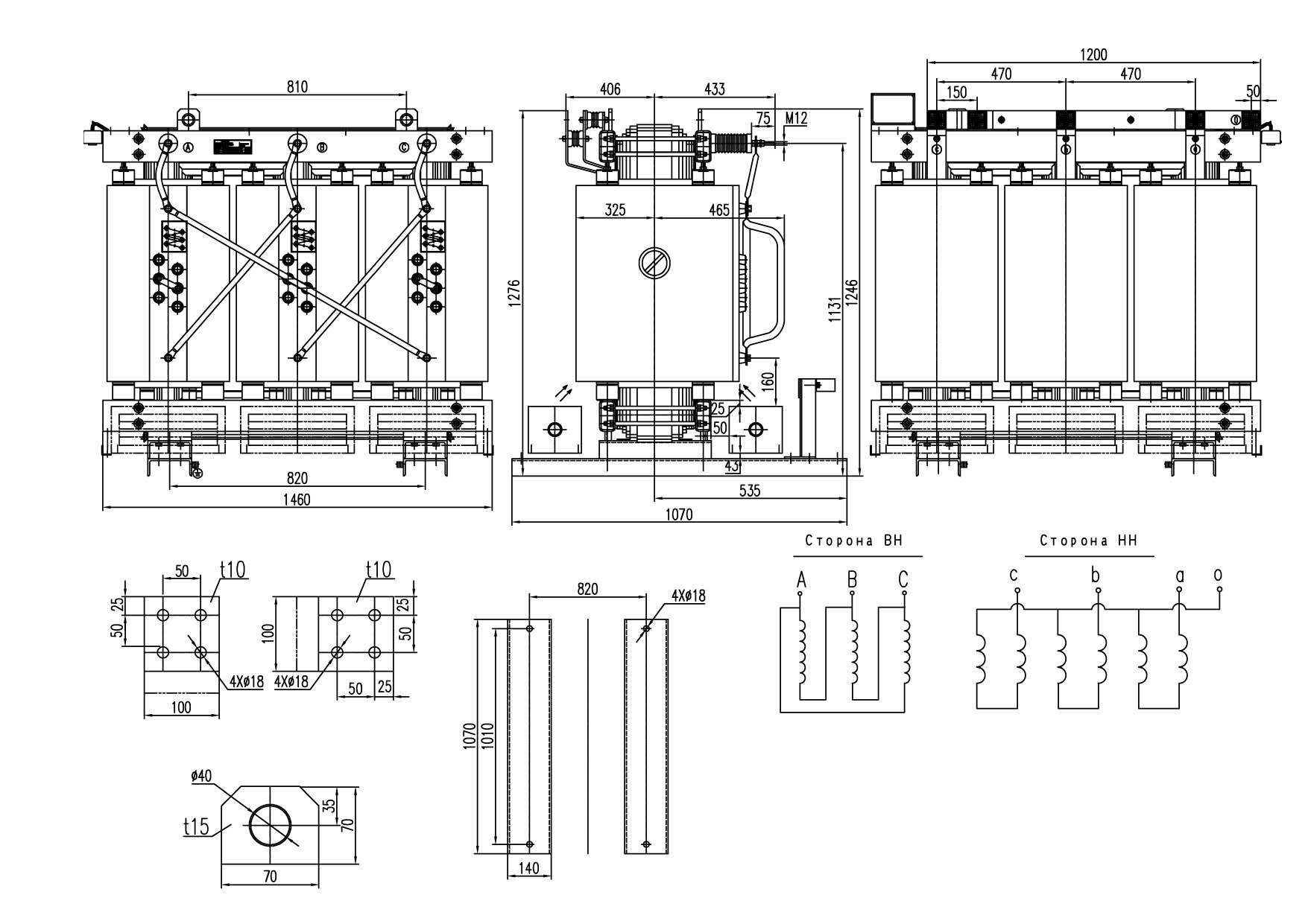 - Номинальное низшее напряжение (НН): 0.4 кВ