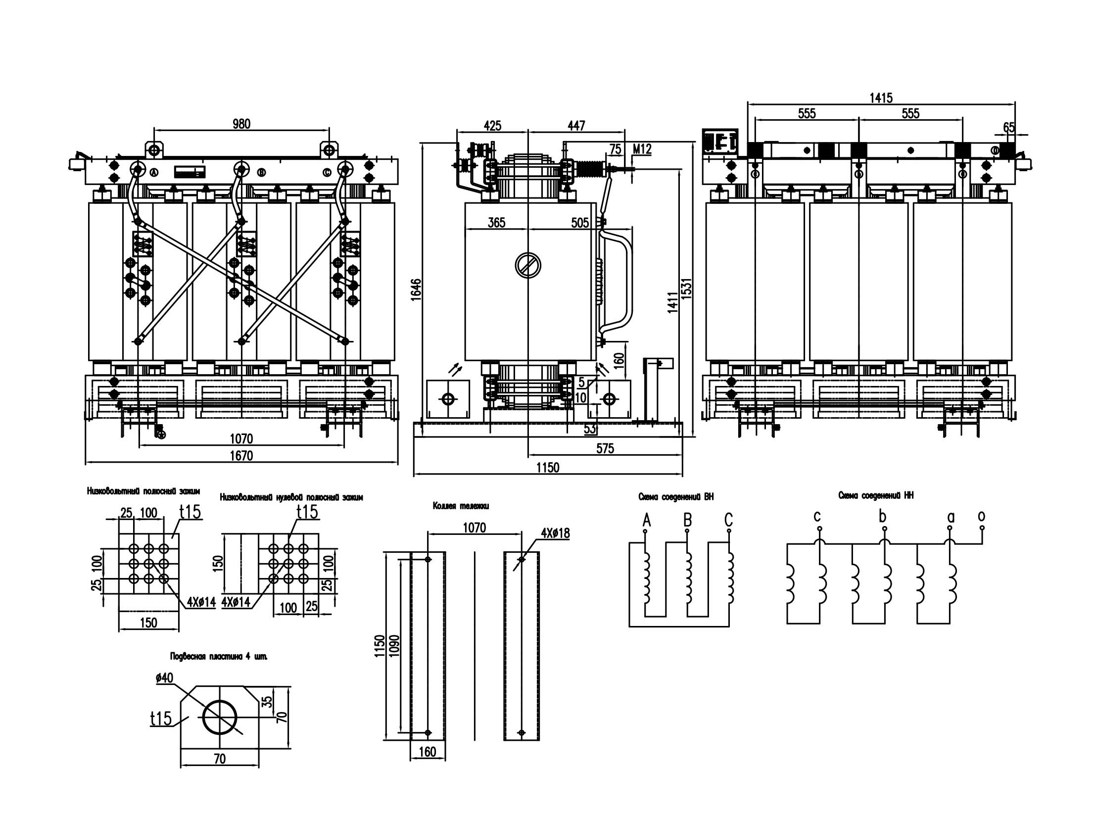 Чертеж сухого трансформатора ТСЛ 3150 ква с литой изоляцией прилагается.