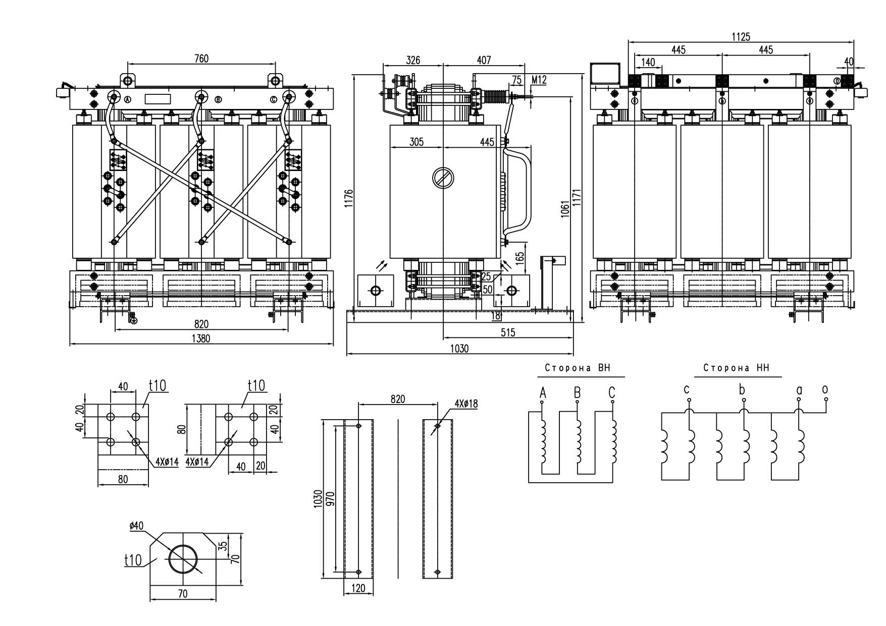 - Габариты трансформатора: 1380*1030*1171 мм;