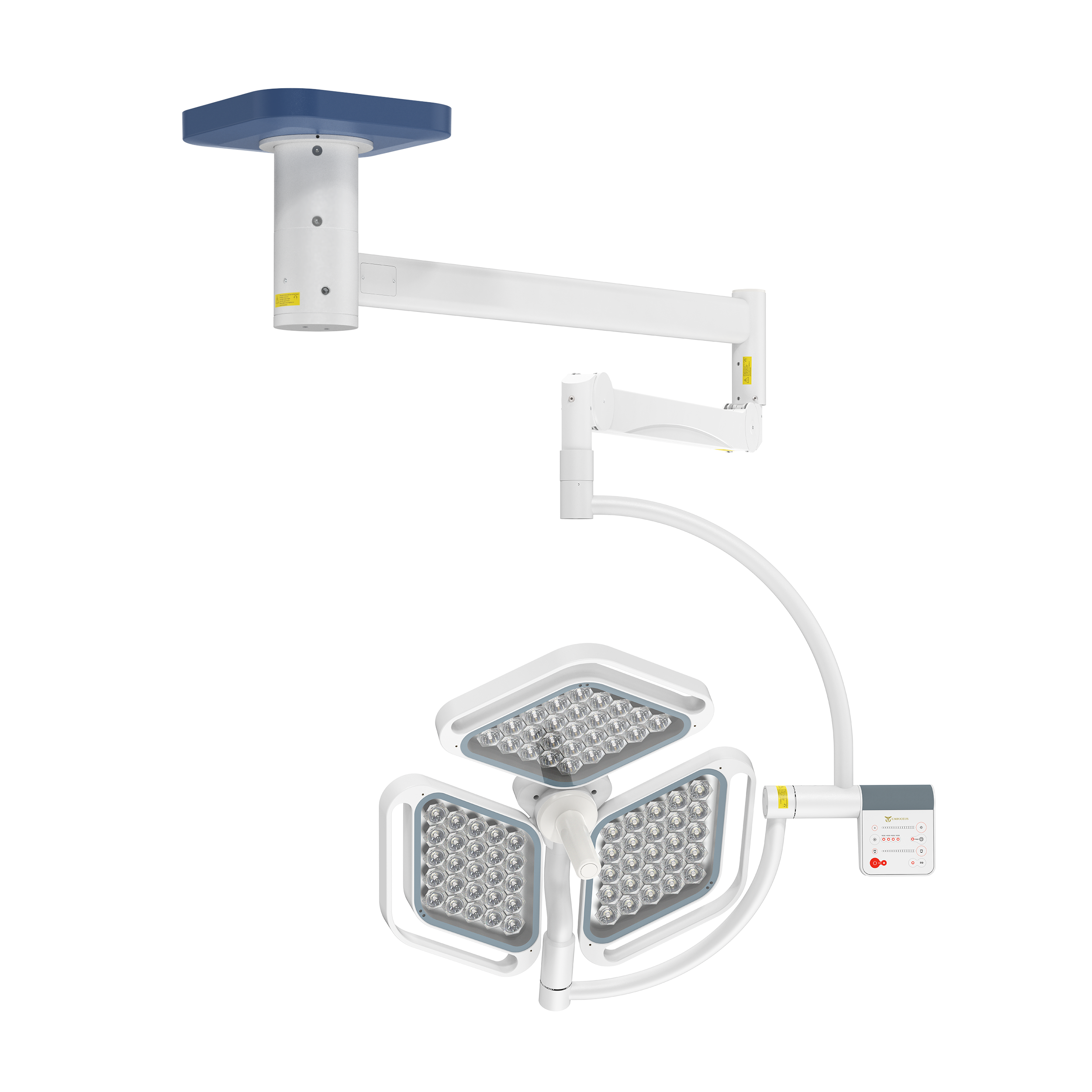 Функциональные хирургические светильники CADUCEUS CL1-L3 выполнены в виде потолочной трехлепестковой однокупольной системы бестеневого освещения и оснащены интуитивно понятной системой управления, позволяющей оперативно настраивать диаметр, интенсивность и фокусировку светового поля.