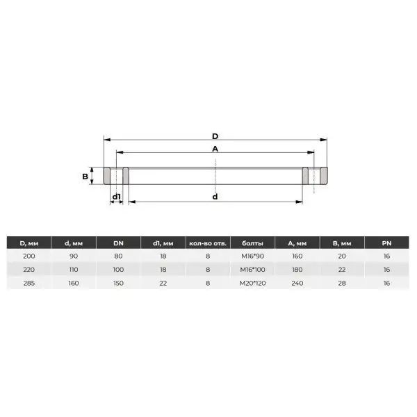 Свободный фланец d200 PN16 AQUAVIVA, Россия