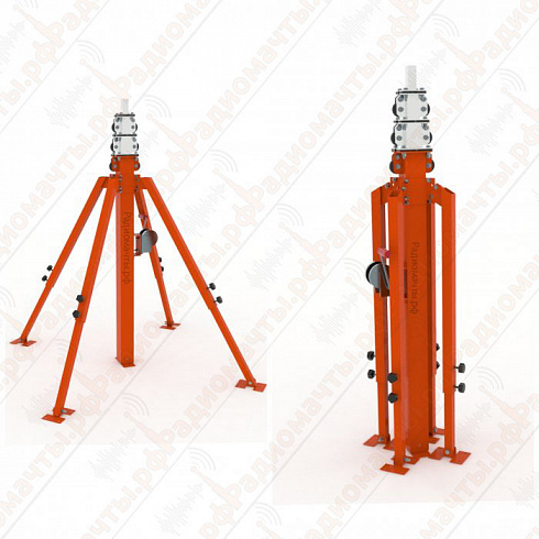 Благодаря телескопической конструкции изделия и ручной лебедкой для ее подъема, монтаж осветительной мачты может выполнить даже один человек в течении нескольких минут. При необходимости установить мачту на другой площадке ее демонтаж занимает даже меньше времени, чем установка. Плюс собранную конструкции можно перенести на руках, так как ее вес не превышает 45 кг.
