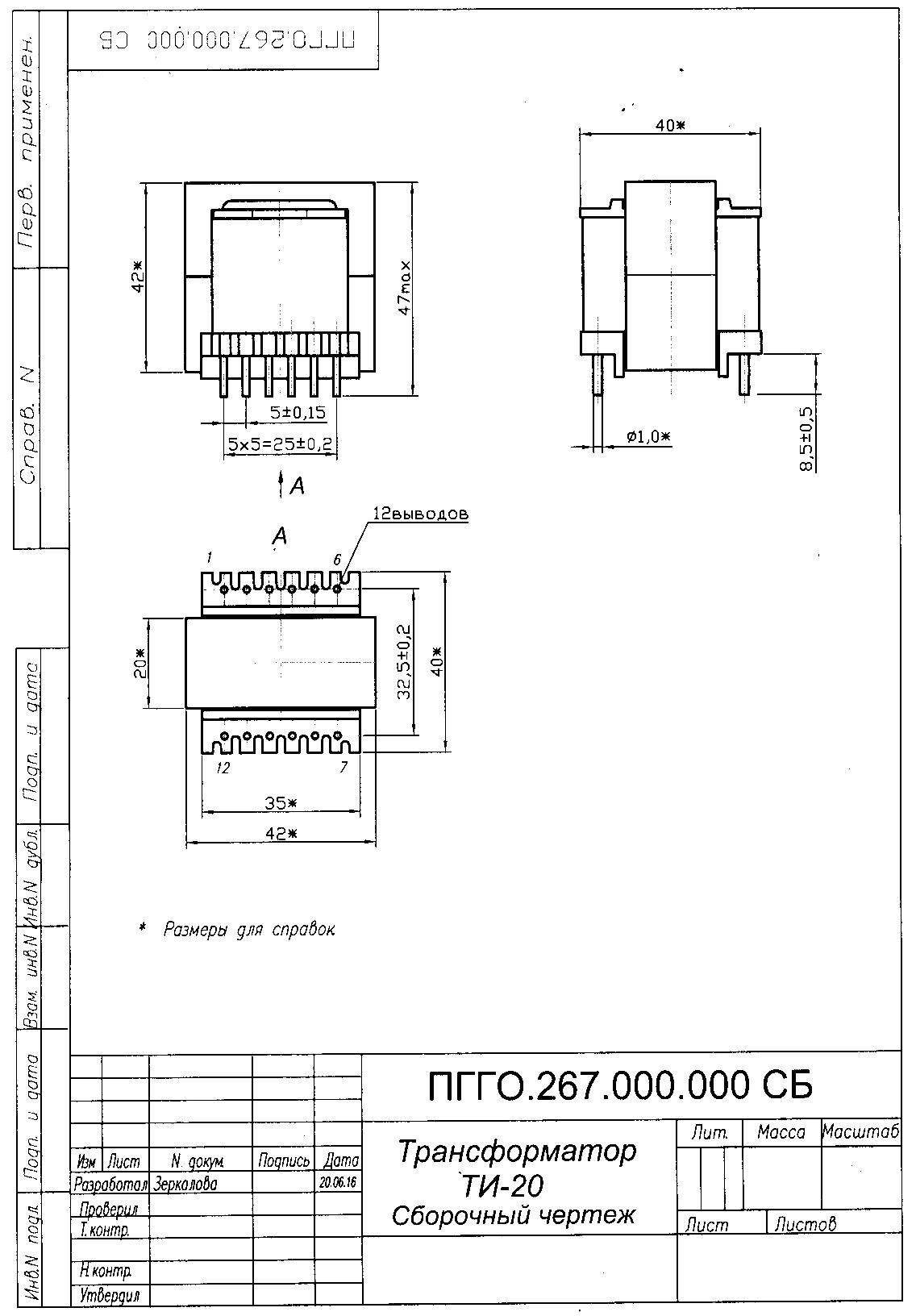 Трансформатор на феррите ТИ-20- , ТПВ-20- (200 Вт) – любые выходные параметры в пределах мощности типоразмера частота преобразования от 2000 Гц