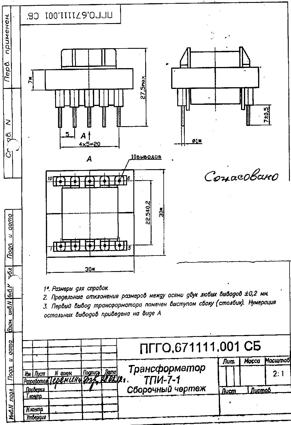 Трансформатор на феррите ТИ-7- , ТПВ-7- (100 Вт) – любые выходные параметры в пределах мощности типоразмера частота преобразования от 2000 Гц