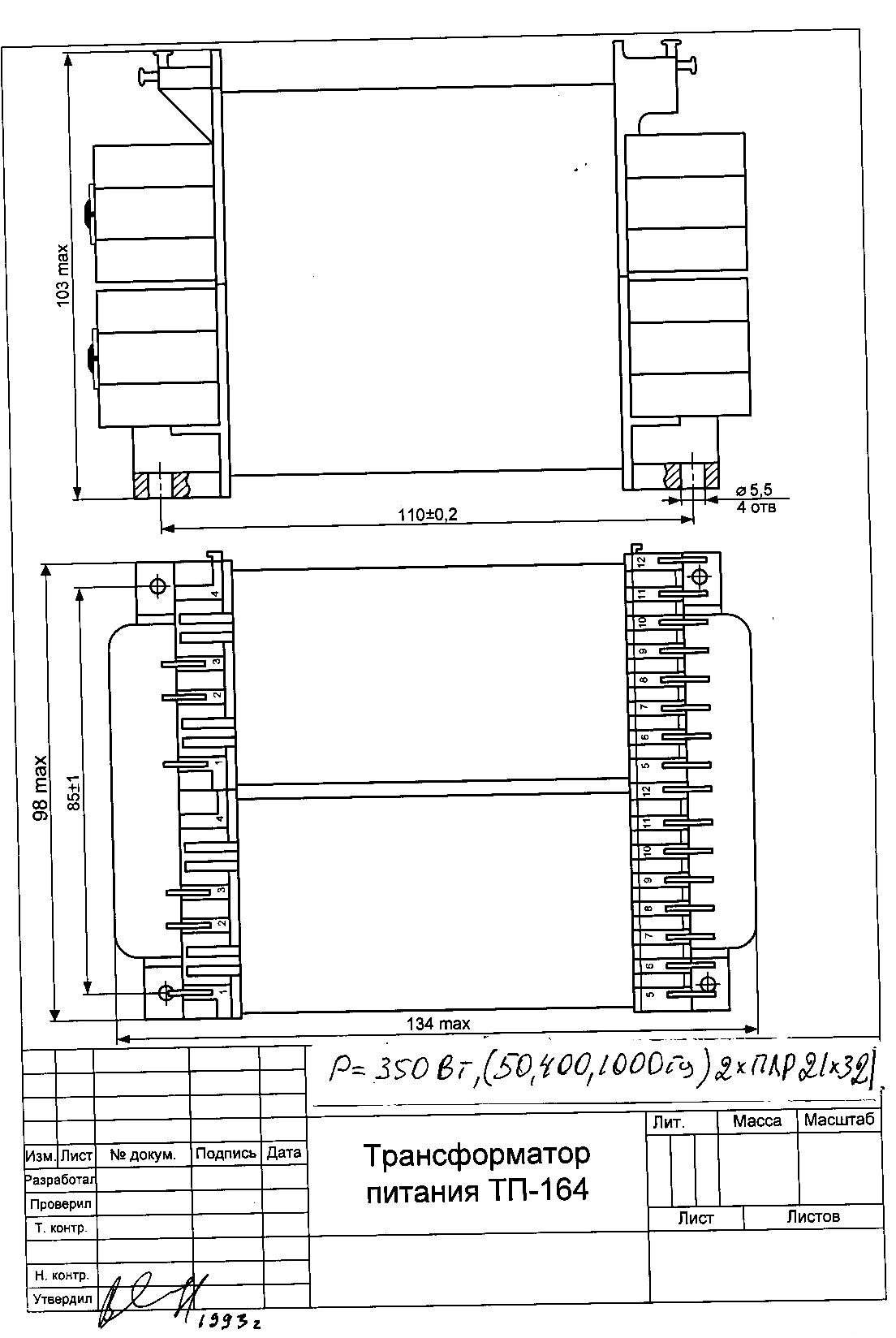 Трансформатор питания ТП-164-(350 Вт) ГОСТ 14233-84 (50,400,1000 Гц)
