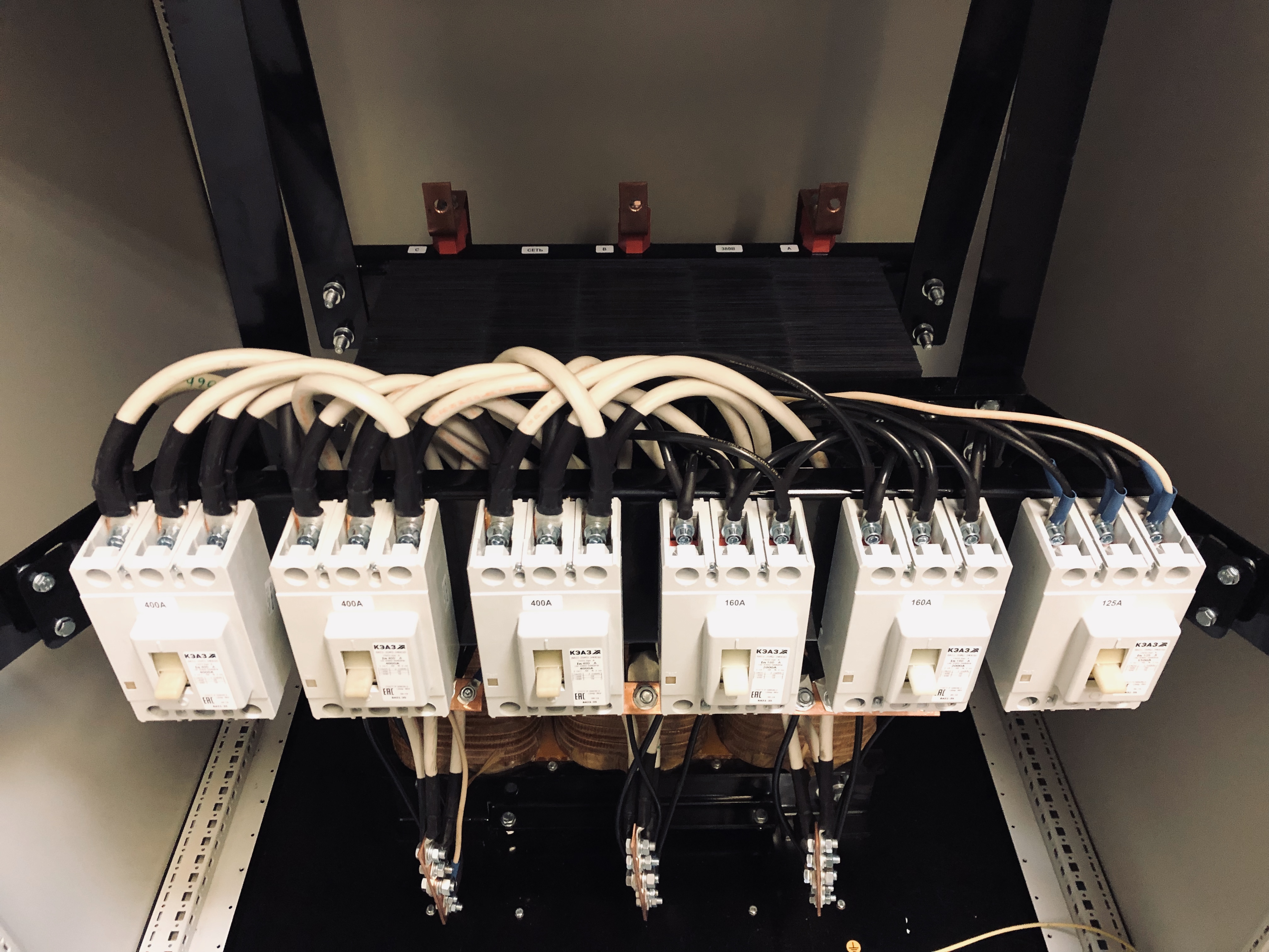 Трансформатор оборудован автоматическими выключателями
