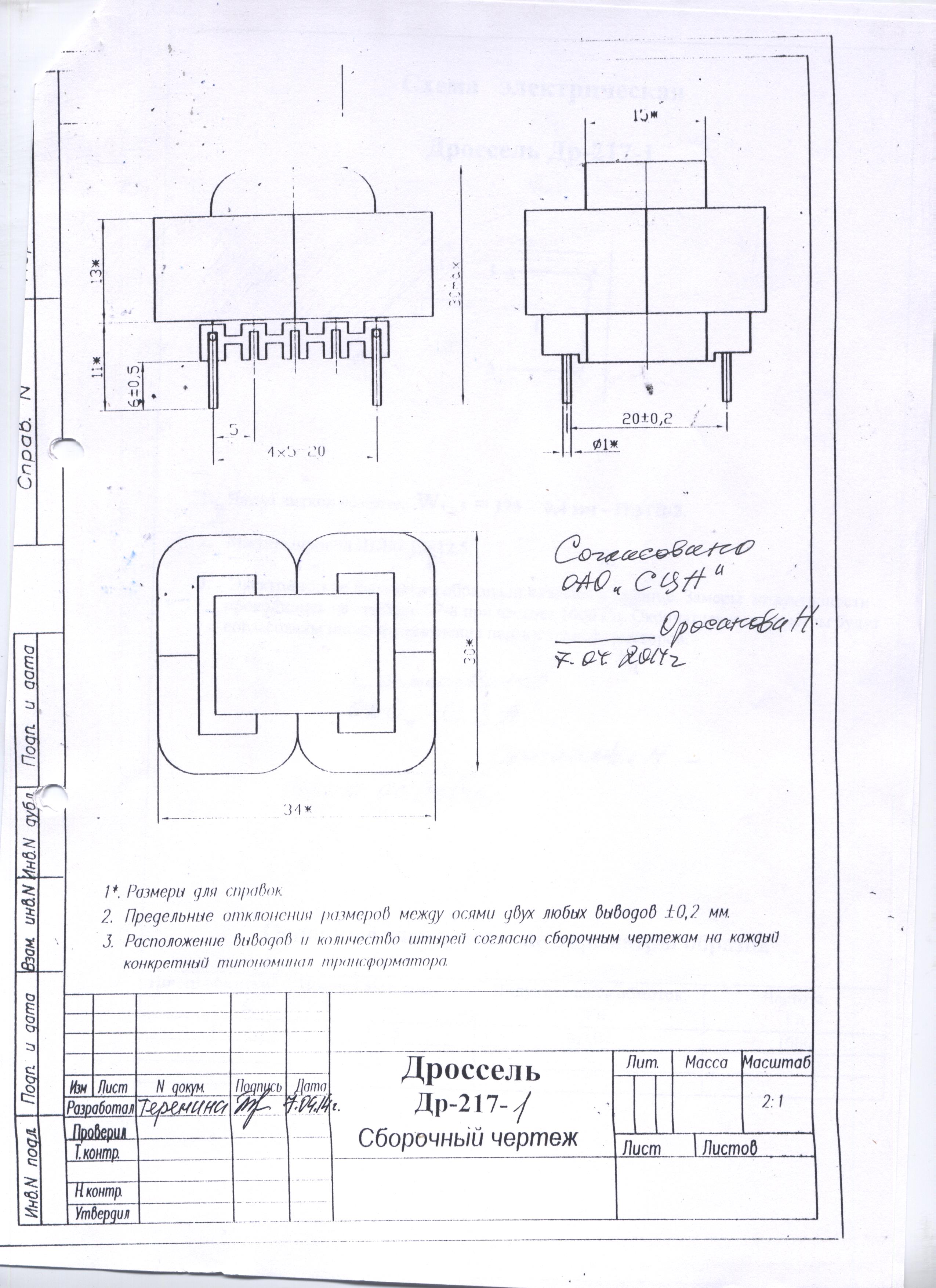 Трансформатор звуковой ТВЗ-217(2 Вт) ГОСТ 14234-84(50,400,1000 Гц)