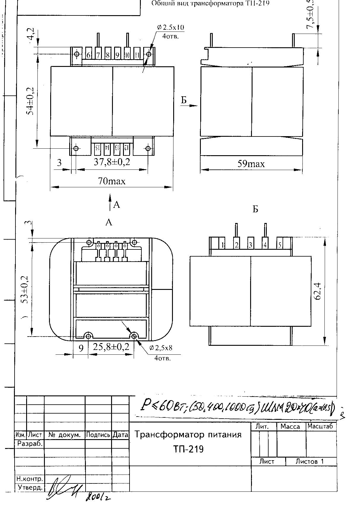 Трансформатор звуковой ТВЗ-219(60 Вт) ГОСТ 14234-84