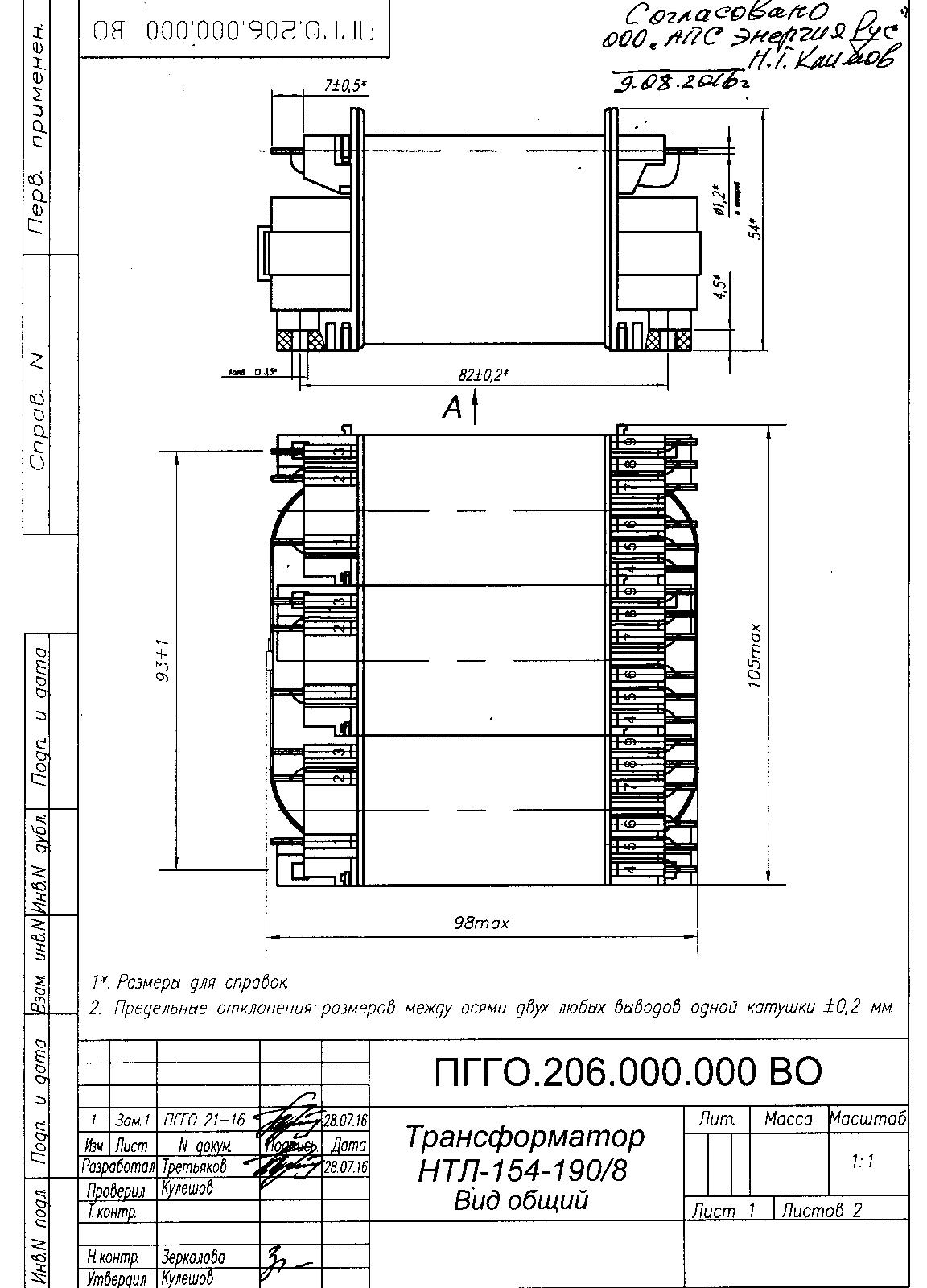 Трехфазный трансформатор НТЛ-154-(54 Вт) (50,400,1000 Гц0