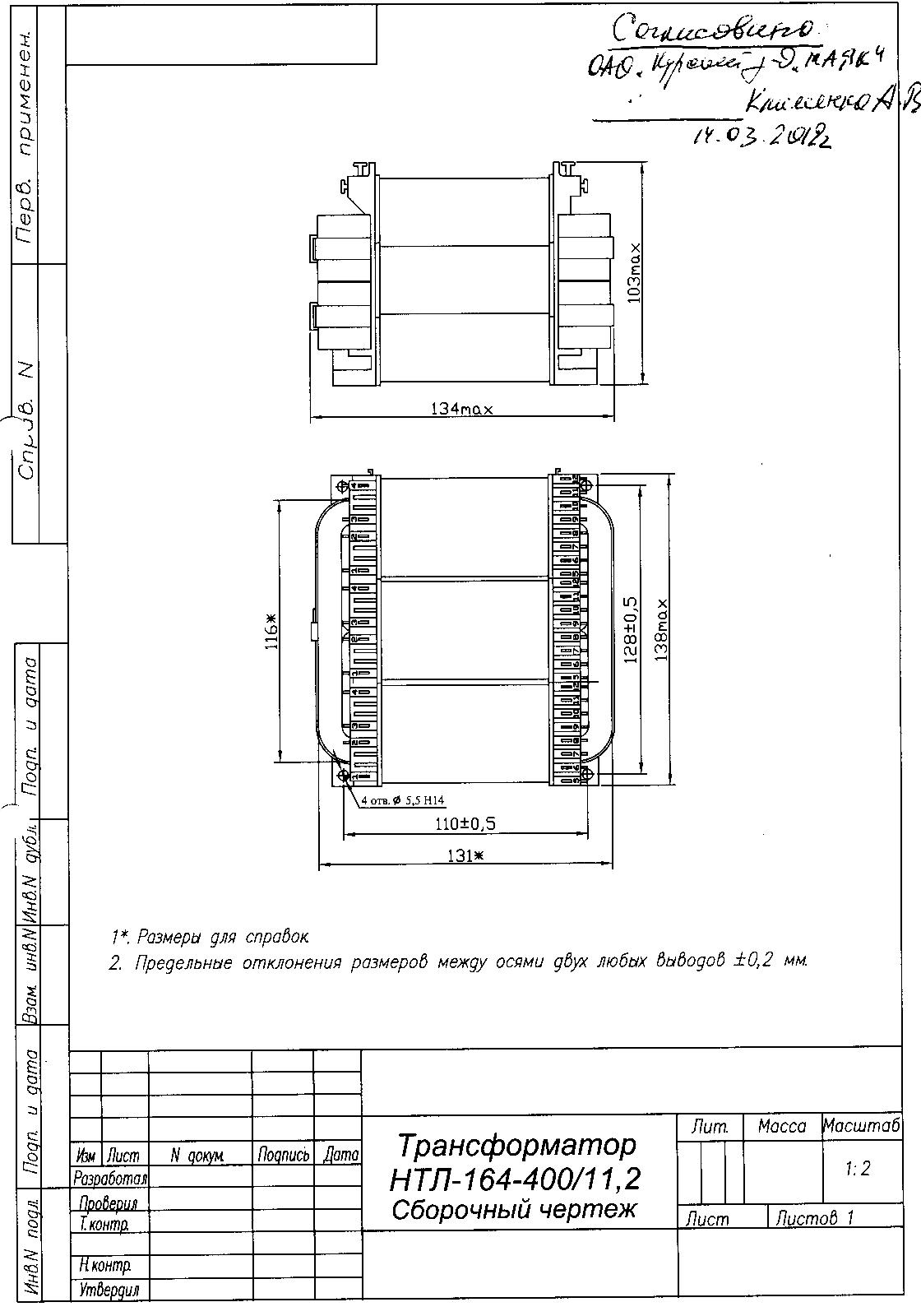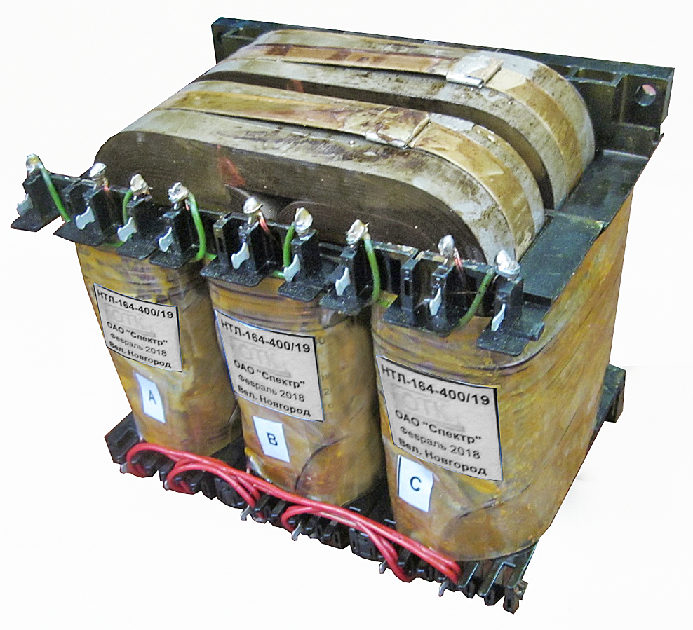 Трехфазный трансформатор НТЛ-164- (400 Вт) – любые выходные параметры в пределах мощности типоразмера, частота сети 50, 400, 1000 Гц