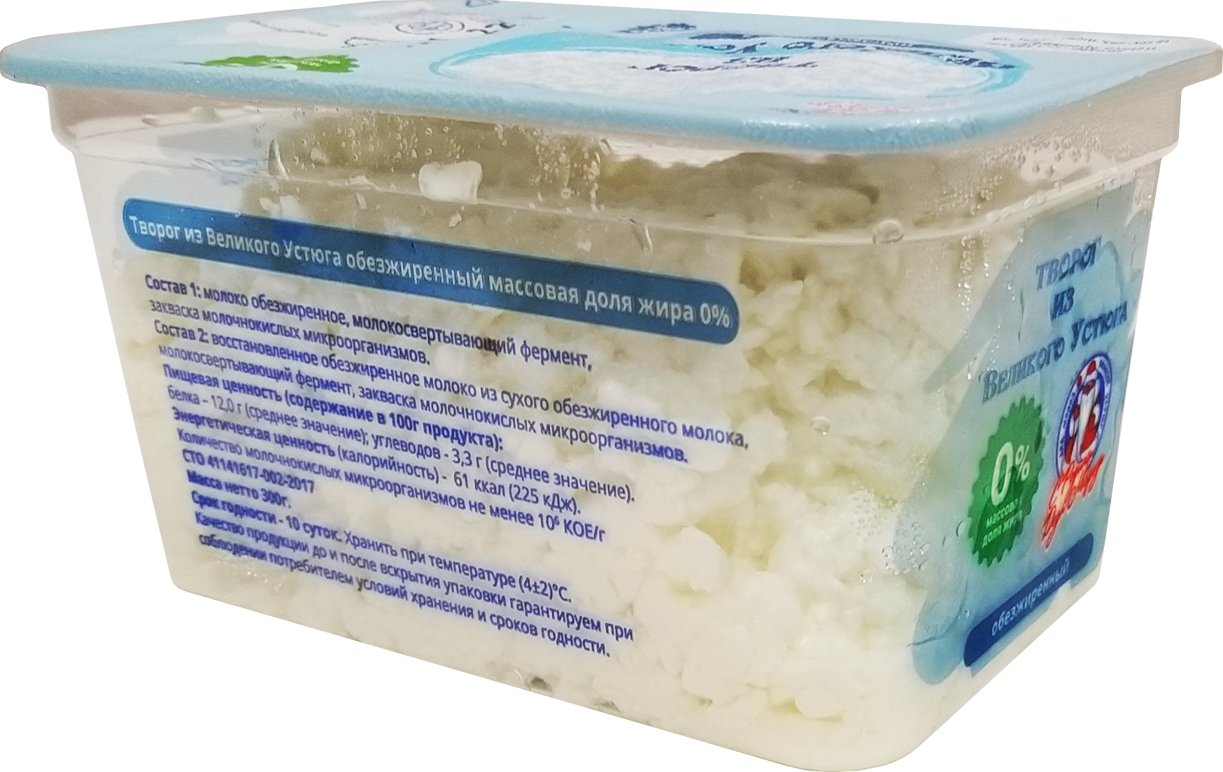 - Творог из Великого Устюга обезжиренного, контейнер 0,3кг