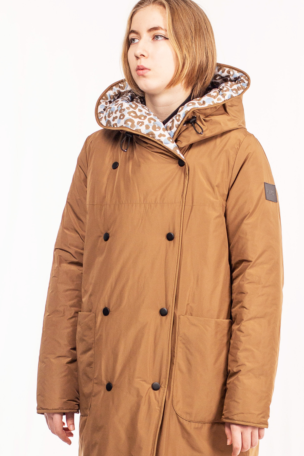 Пример пошива функциональной зимней парки прямого силуэта с утеплённой подкладкой и выразительной внутренней отделкой с леопардовым принтом. Модель оснащена глубоким капюшоном на утяжке, крупными накладными карманами и потайной застёжкой на кнопки. Съёмный пояс позволяет подчеркнуть талию. Парка надёжно сохраняет тепло и отлично подходит для зимнего сезона.