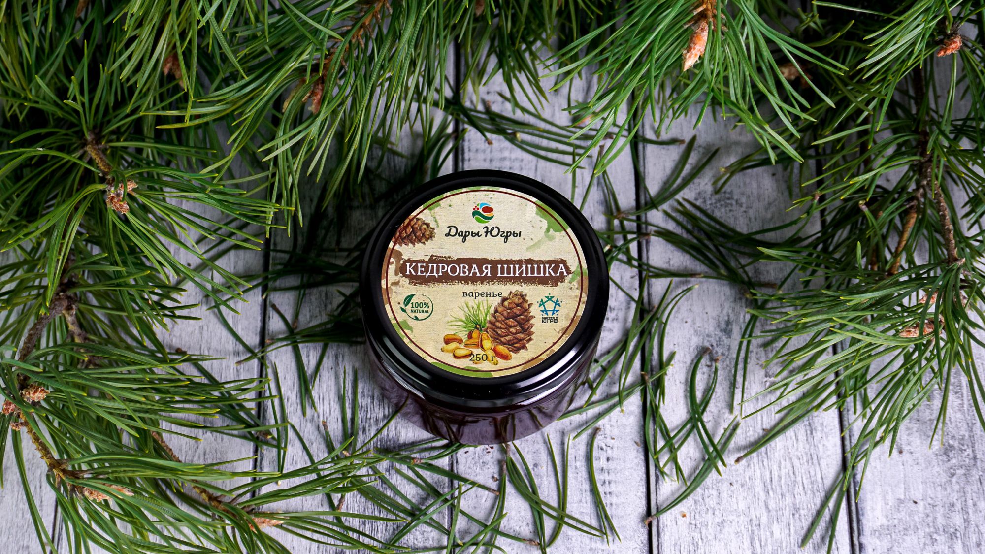 Варенье из кедровой шишки, от компании Регион-К "Дары Югры". Место сбора дикоросов Ханты-Мансийский автономный округ - Югра. Состав: шишка кедра сибирского, сахар, вода.