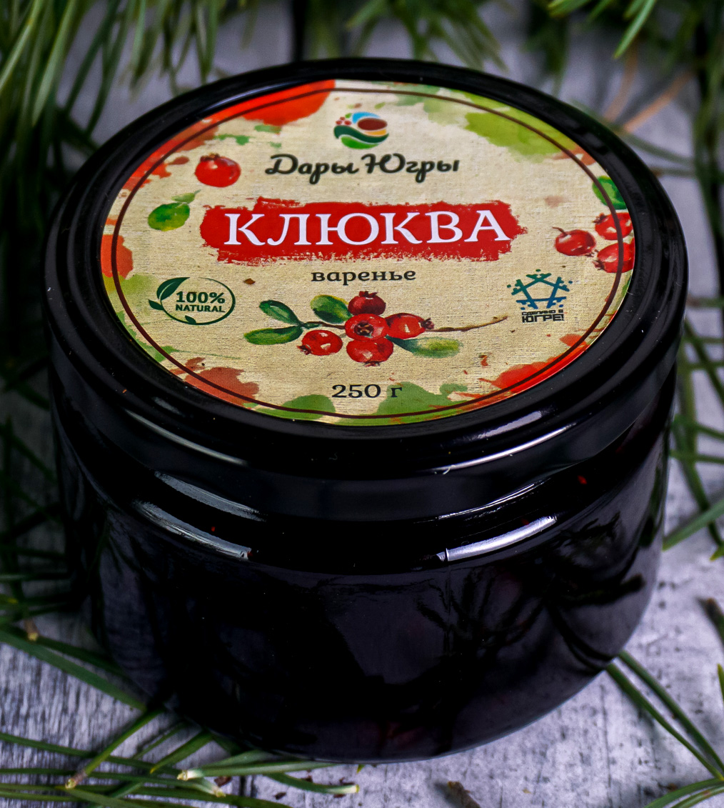 Варенье из лесной - дикорастущей клюквы, от компании Регион-К "Дары Югры". Место сбора дикоросов Ханты-Мансийский автономный округ - Югра. Состав: клюква лесная дикорастущая, сахар.