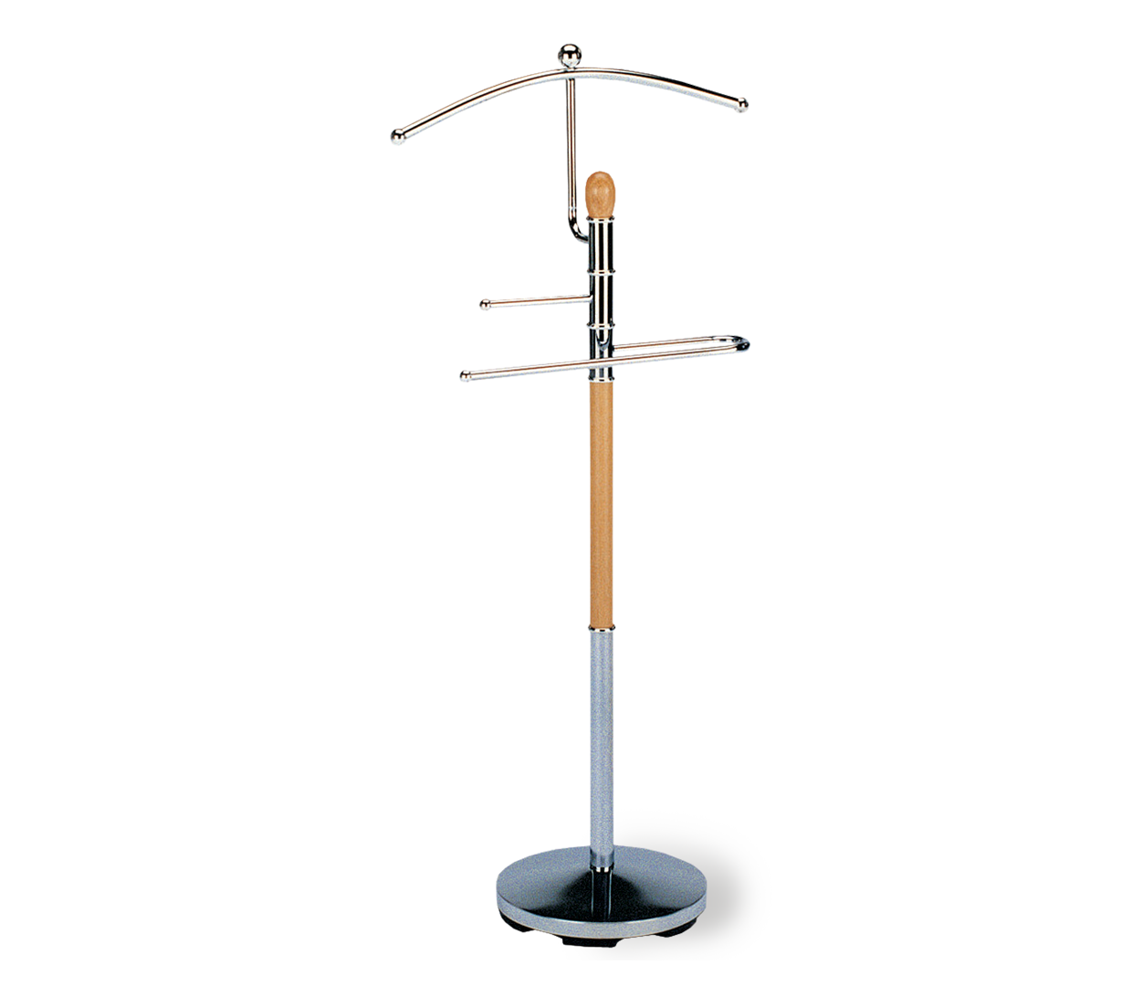 - Вешалка выполнена из хромированной трубы, диаметром 32 мм и натурального дерева, диаметром 28 мм;