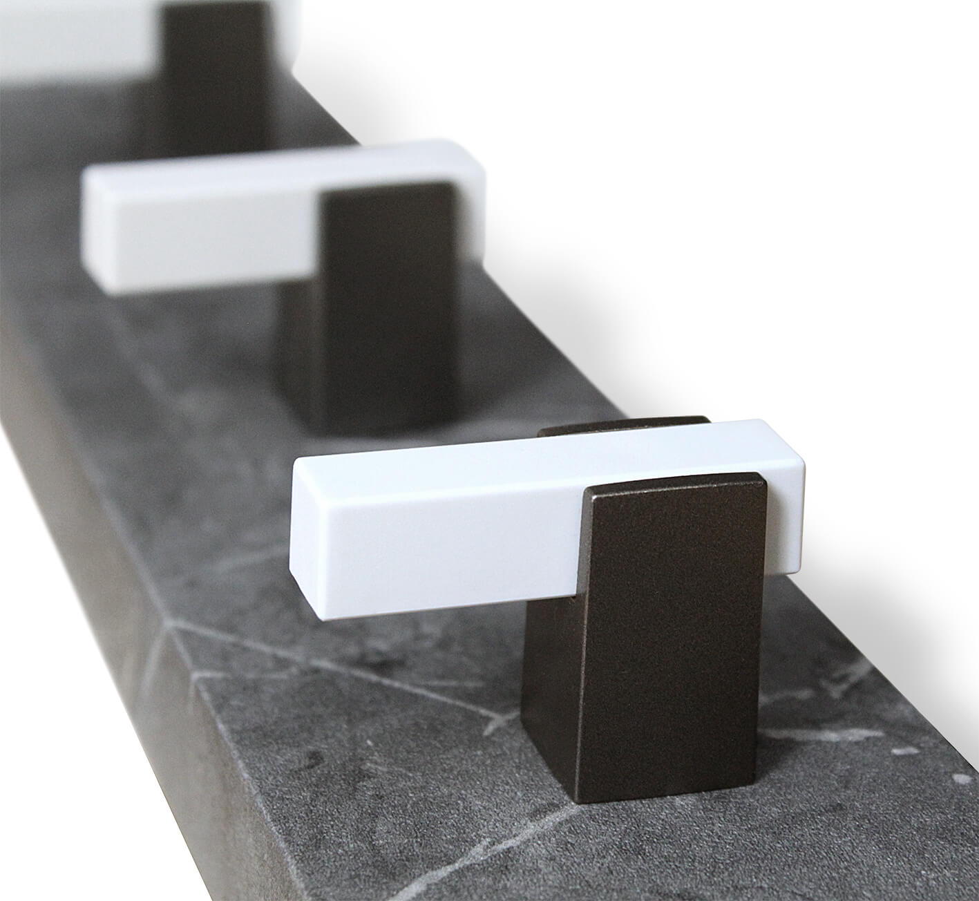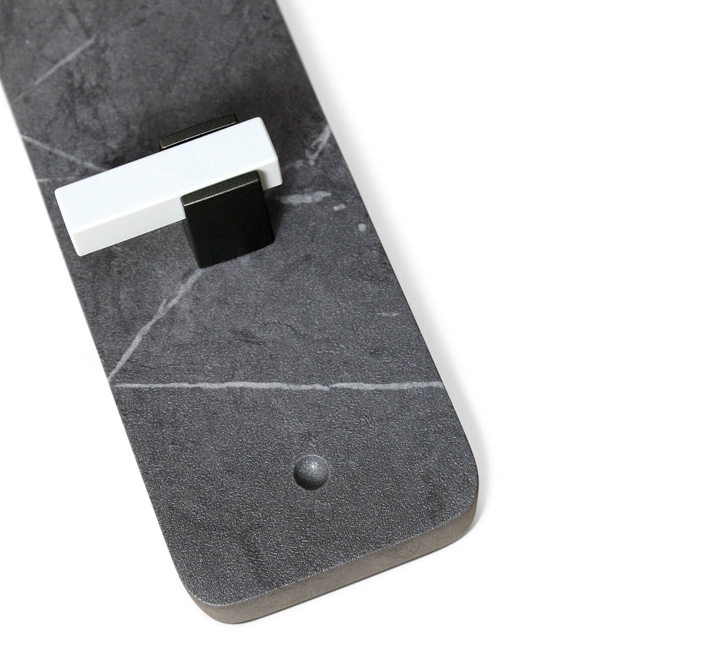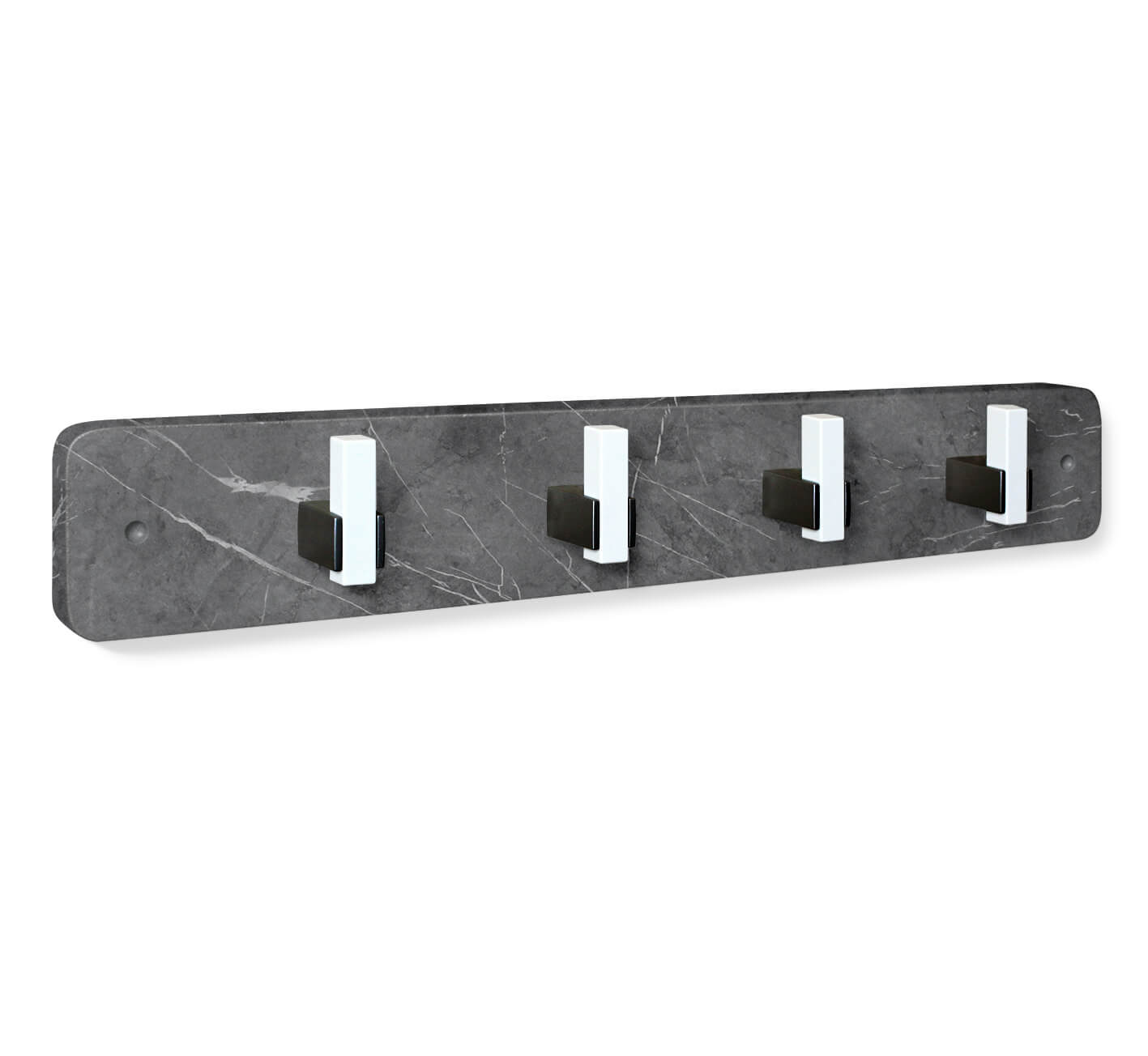 Основа вешалки выполнена из МДФ. Этот материал не содержит и не выделяет вредных веществ. Смотрится аккуратно и привлекательно, поскольку имеет плавный закругленный переход от лицевой поверхности к боковым кромкам. Рельефные и структурные формы вешалки визуально неотличимы от натурального мрамора. Минималистичные двухцветные крючки придают изделию лаконичности.
