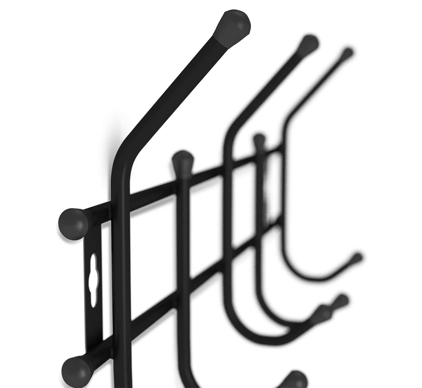 Вешалка выполнена из металлической трубы 10 мм. и пластиковой фурнитуры 12 мм.