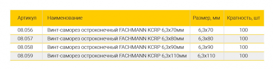 Купить винт-саморез 6,3х70/80/90/110 мм Fachmann можно, оставив заявку на сайте.