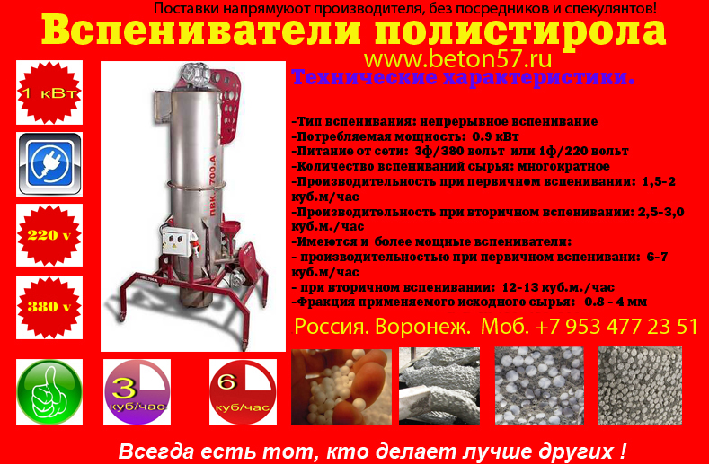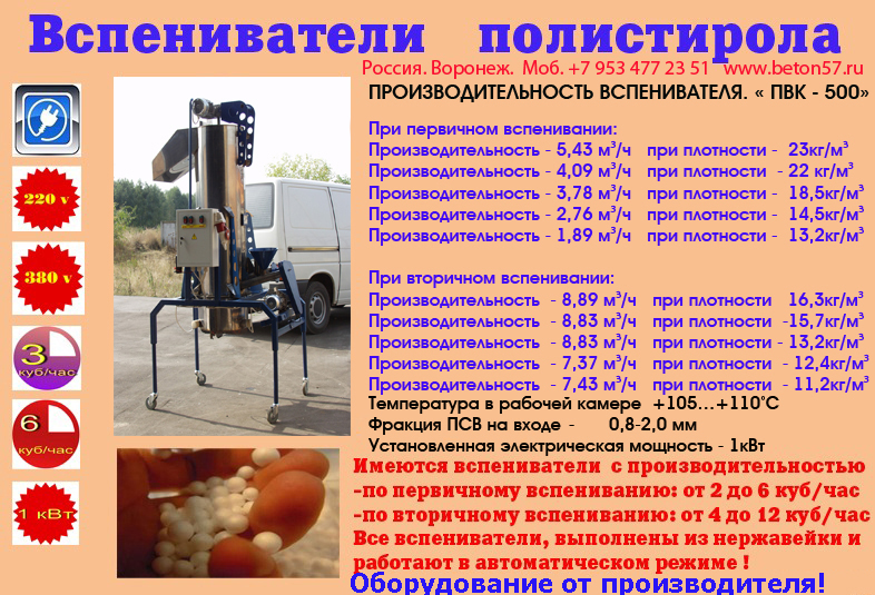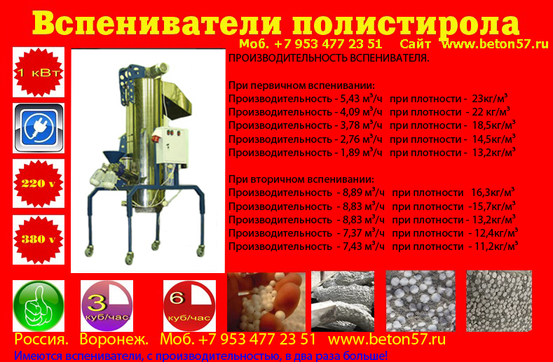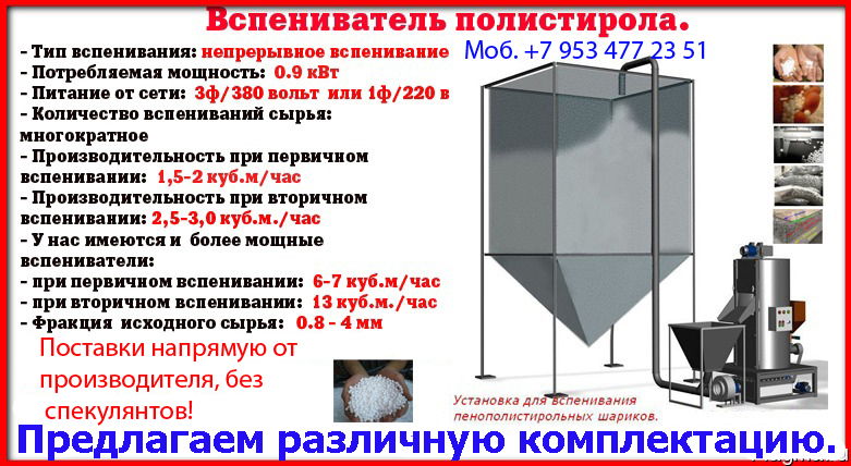Производим вспениватели гранул полистирола. Собственное серийное производство.