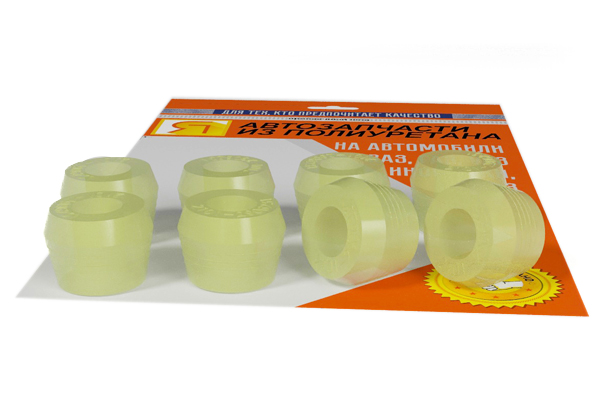 Ремкомплект 11Р - втулки заднего амортизатора на ВАЗ 2101-2107, 2121, 21213 из полиуретана. Втулки амортизатора 2101-2906231 предназначены для снижения вибраций и ударных нагрузок на кузов автомобиля в местах крепления амортизатора к кузову или элементам подвески. Размер: высота-20мм, d-16мм, D-30мм. Изготовлены из российского и немецкого полиуретана в нескольких цветах: белый, красный, желтый, прозрачный.