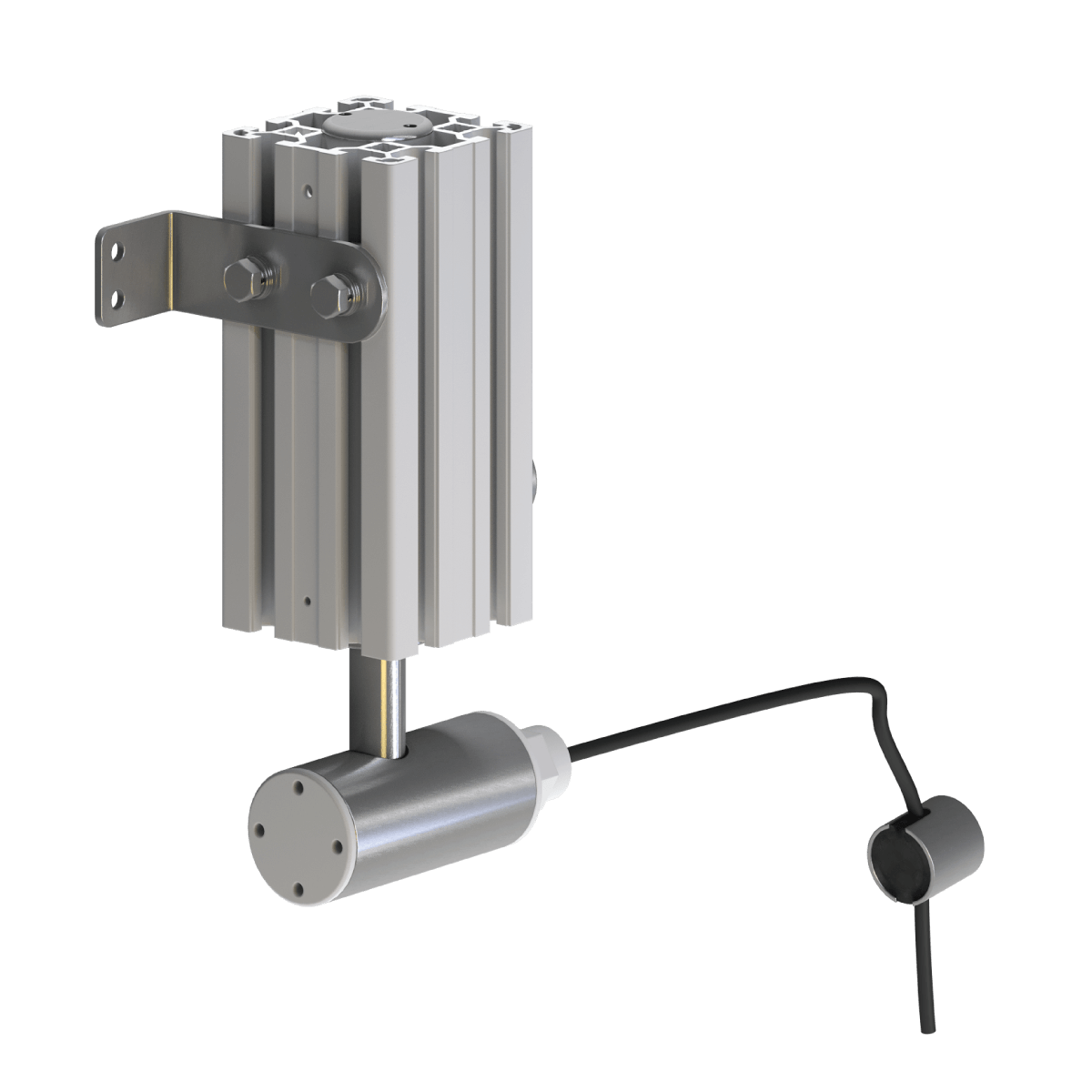 Конструктивно ВНУ выполнена в виде профильного алюминиевого радиатора с расположенным внутри нагревательным элементом и регулирующим температуру нормально замкнутым термостатом (T2), который поддерживает температуру поверхности в заданном диапазоне вне зависимости от температуры внешней среды. Во входящем кабеле вмонтирован нормально замкнутый термостат включения и выключения обогревателя, следящий за температурой окружающего воздуха (T1).