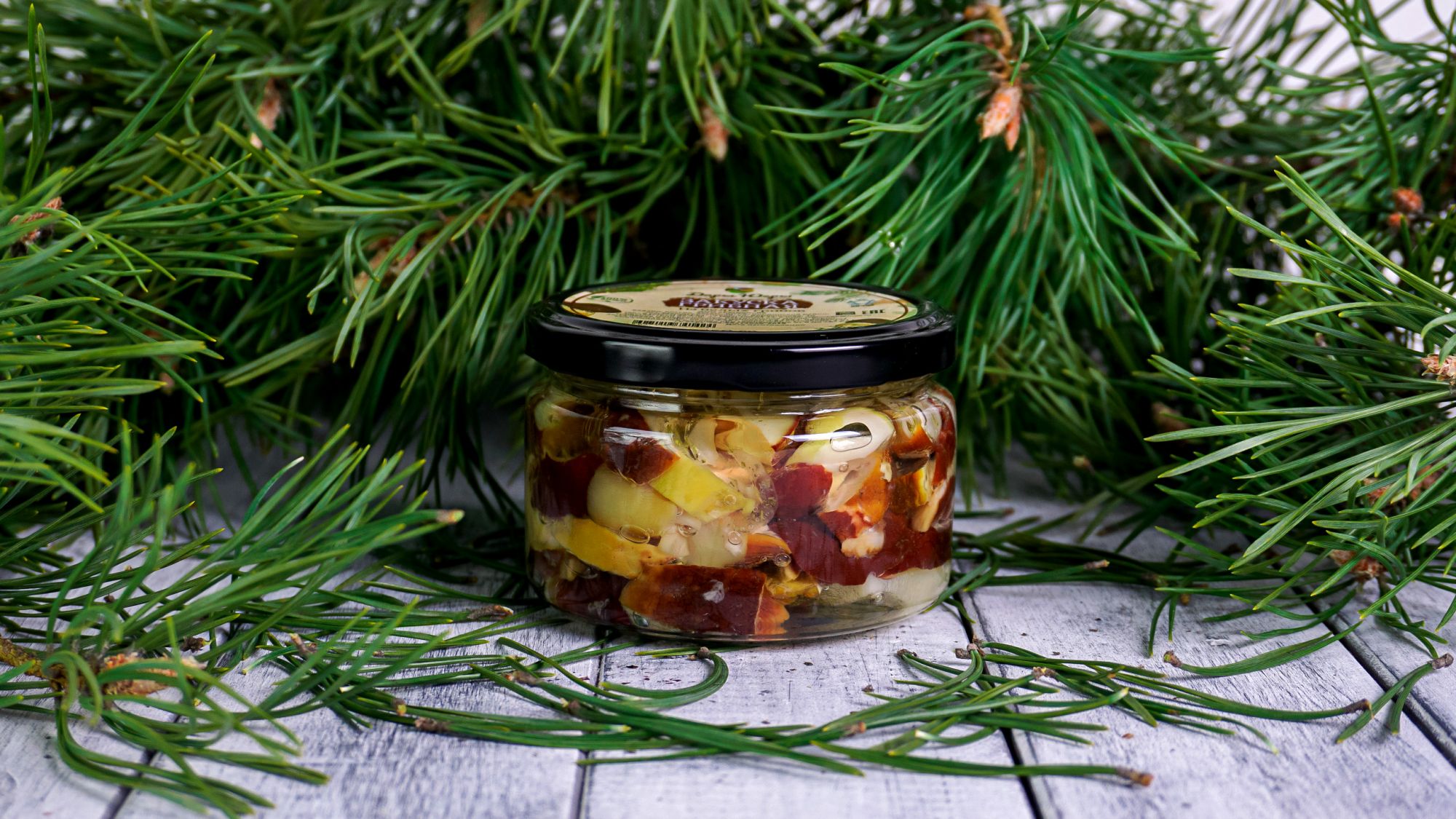 У нас довольно обширный ассортимент варенья, конфитюра, пасты, джема, глинтвейна, карамели, меда, сиропа, шоколада, цукатов — из сосновых, еловых, кедровых, ягодных дикоросов. Грибной продукции: белый гриб боровик, лисичка, груздь, подосиновик, моховик, опенок, масленок, ежовик.