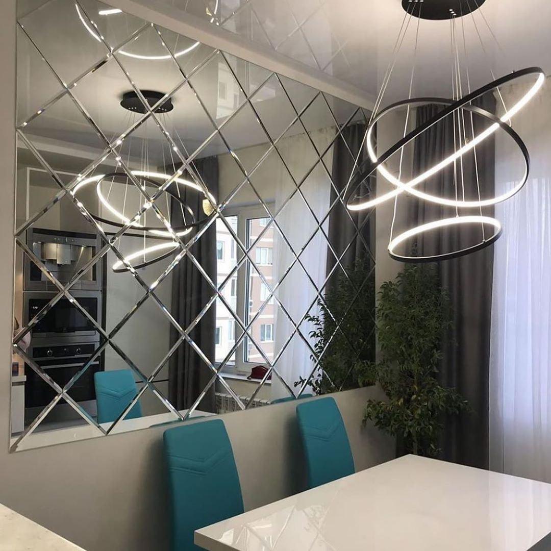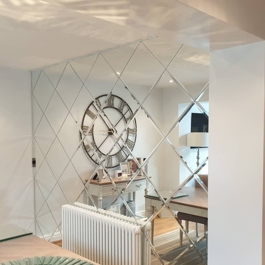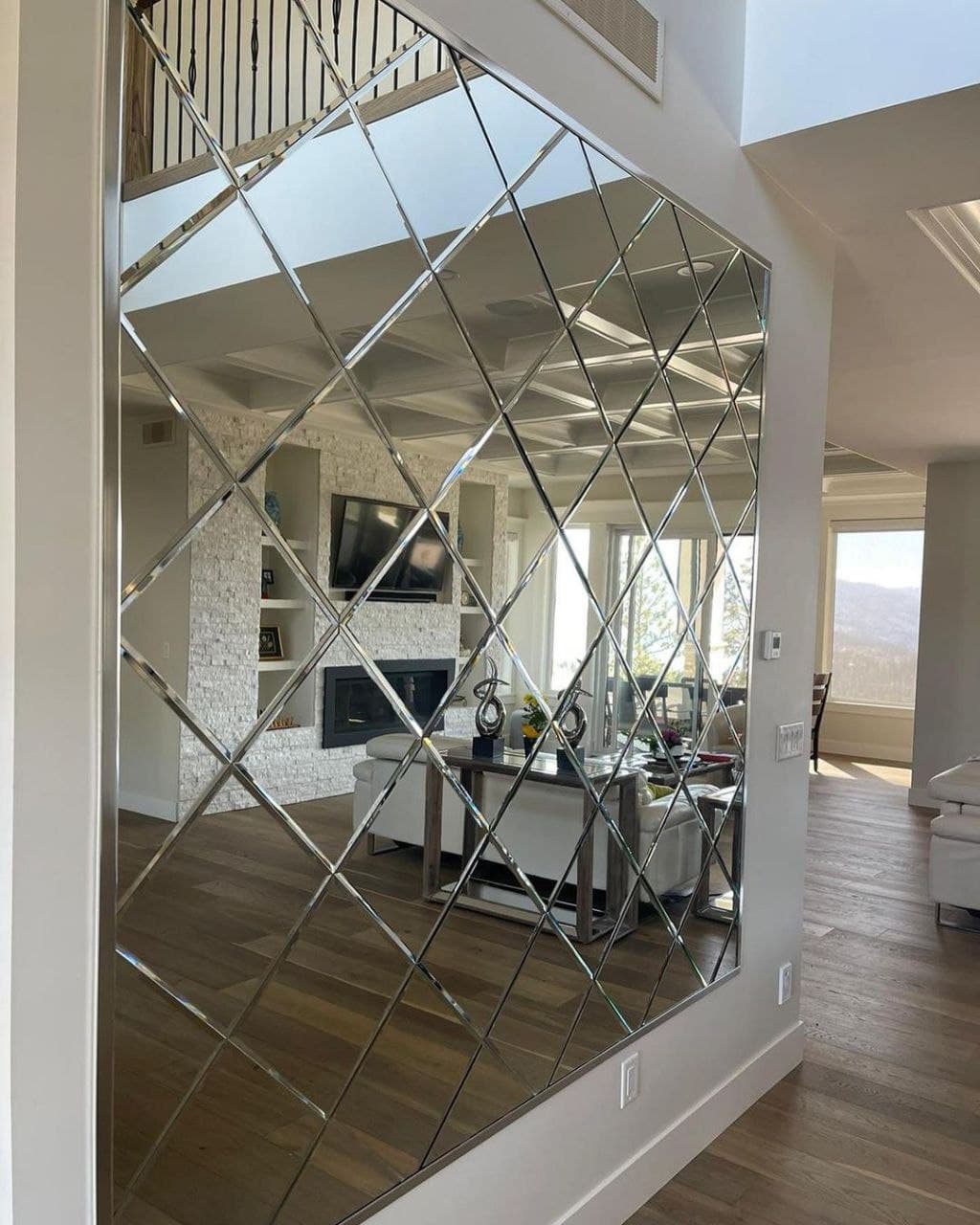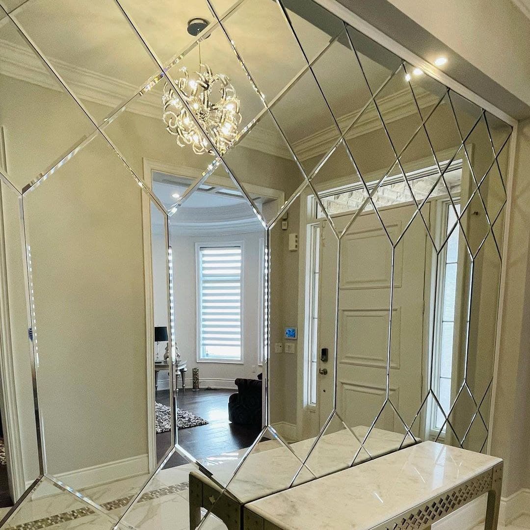 Заказать изготовление и установку зеркального панно с фацетом на стену в компании Норд Гласс.