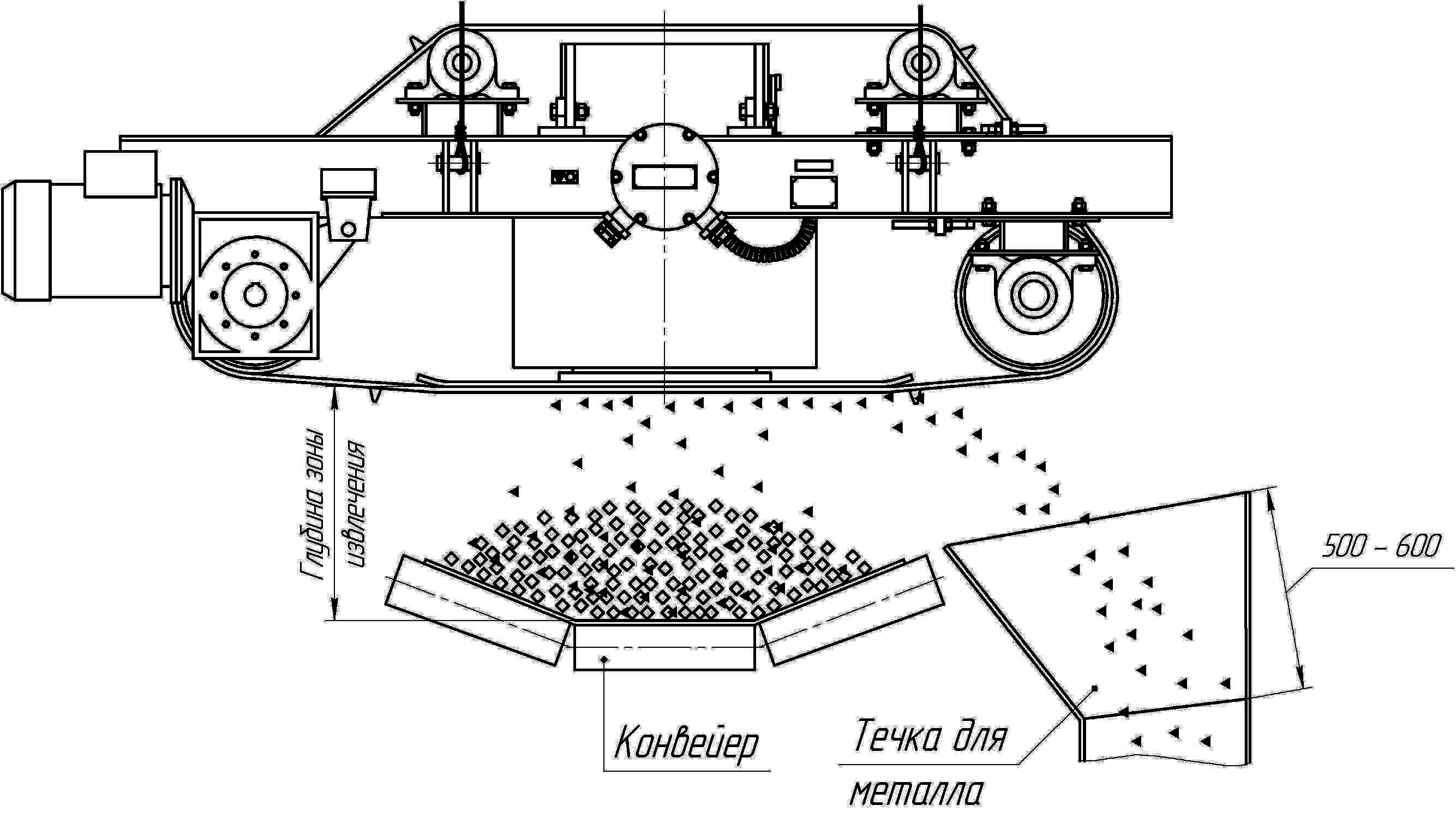 Железоотделитель саморазгружающийся подвесной эффективно извлекают магнитные металлические предметы из потока продукта, транспортирующегося ленточным транспортером. Металлоотделители подвесные устанавливаются над ленточным транспортером или над потоком продукта. Электромагнитный саморазгружающийся железоотделитель состоит из конвейерной ленты, электромагнита и привода. В случае масляного охлаждения электромагнитный сепаратор охлаждается трансформаторным маслом. Особенности: большая магнитная сила, пыленепроницаемость влагозащищенное, взрывозащищенное исполнение. Железоотделитель может эффективно защищать от повреждения конвейрное оборудования.