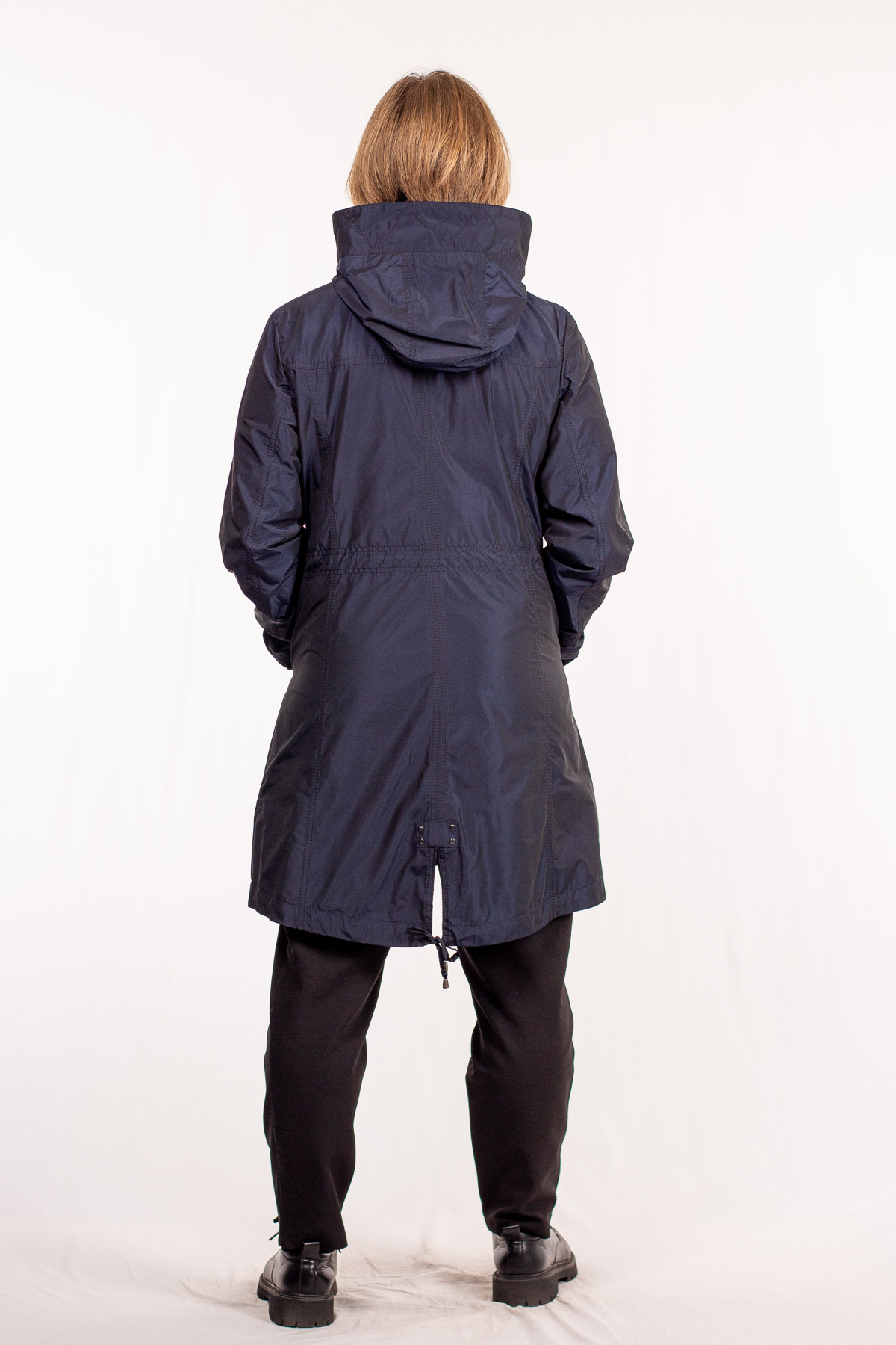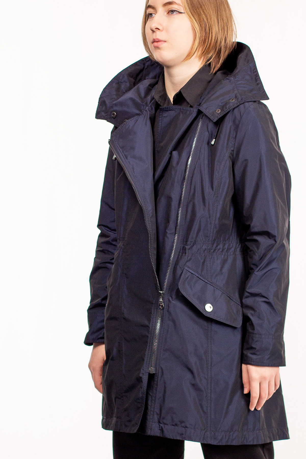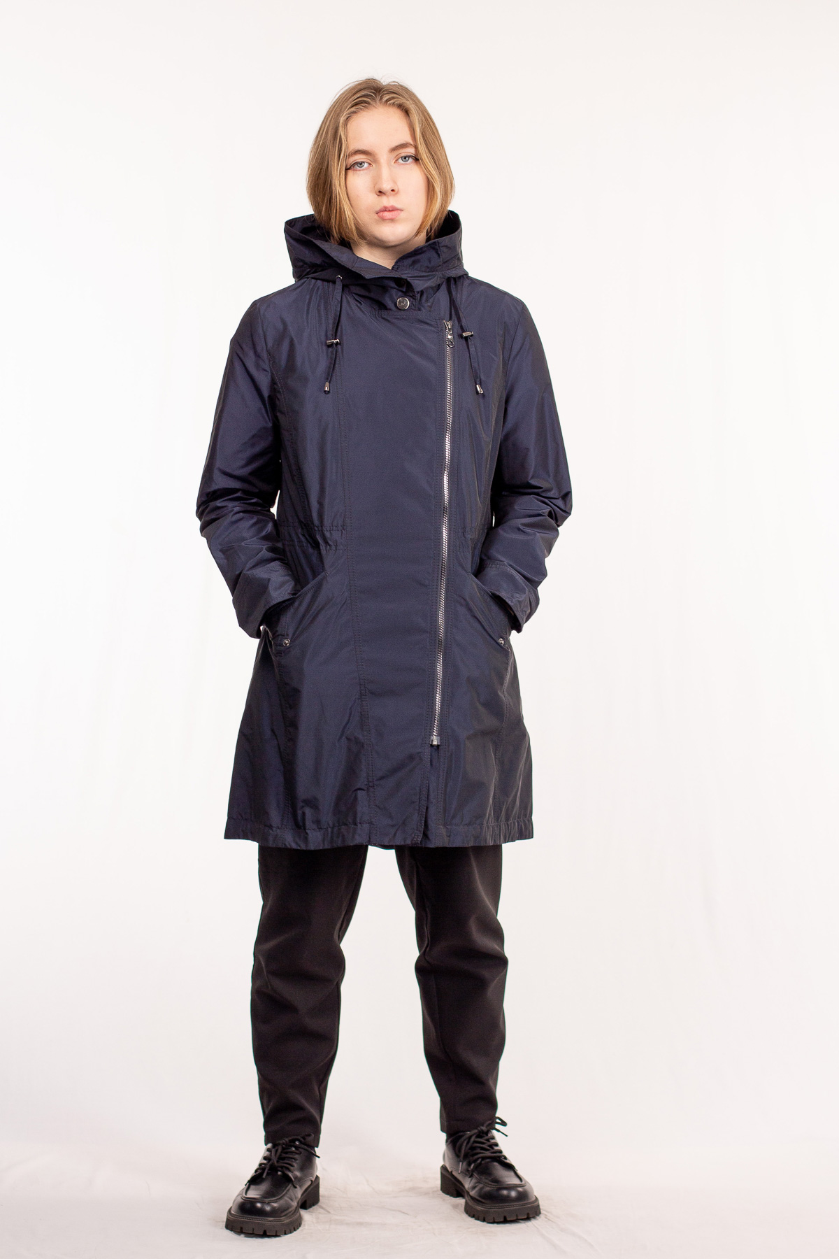 Пример пошива лёгкой удлинённой парки прямого силуэта из влагоотталкивающей ткани. Модель оснащена объёмным капюшоном с утяжкой, застёжкой на молнию с ветрозащитной планкой и регулируемой талией на кулиске. Накладные карманы добавляют функциональности. Идеальный вариант для повседневной носки в весенне-осенний период.