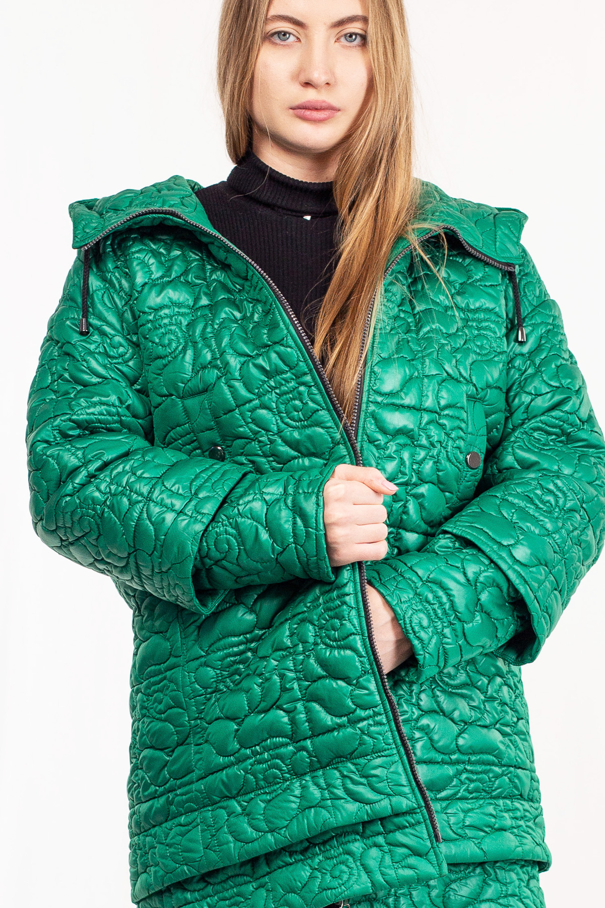 Пример пошива утеплённой куртки прямого кроя из плащевой ткани с глянцевым эффектом и декоративной стёжкой. Модель оснащена объёмным капюшоном с утяжкой, прорезными карманами с клапанами на кнопках и застёжкой на молнию. Контрастная подкладка добавляет комфорта и защищает от ветра. Яркий оттенок и фактурная поверхность делают изделие акцентным элементом демисезонного гардероба.