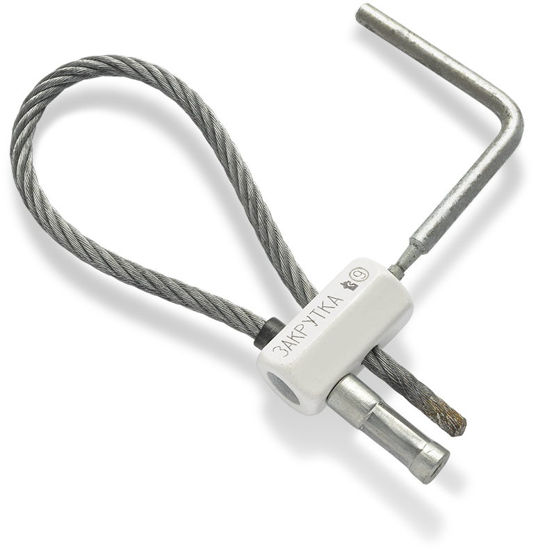 Запорное устройство состоит из гибкого элемента и стопорного винта. Гибкий элемент состоит из троса и корпуса. Корпус имеет сквозное отверстие для протягивания троса и резьбовое отверстие для стопорного винта.