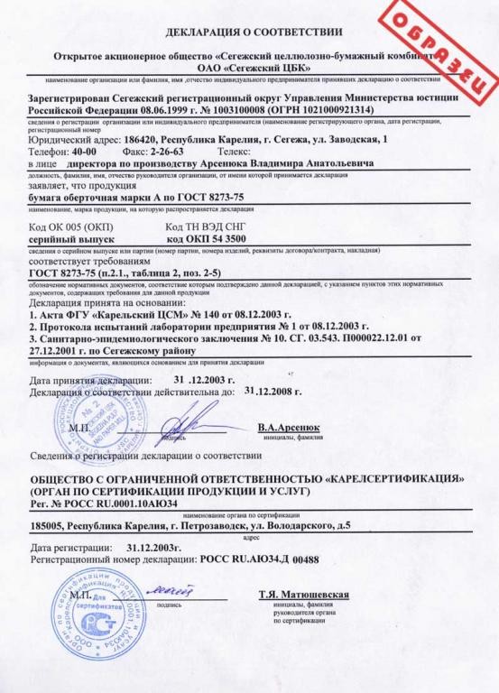 Комбинат является единственным в России производителем крафтовой высокопористой бумаги повышенной прочности.