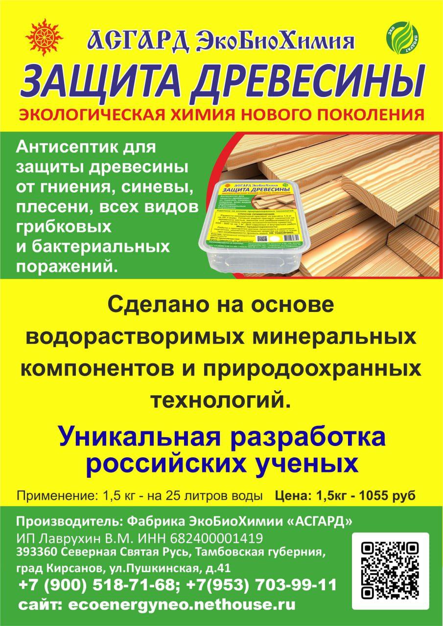 Фабрика ЭкоБиоХимии Асгард - производство первых в Мире экологичных минеральных антисептиков для защиты зданий , домов и квартир от биологических повреждений , для увеличения срока службы строительных материалов и сохранения объектов культурного наследия