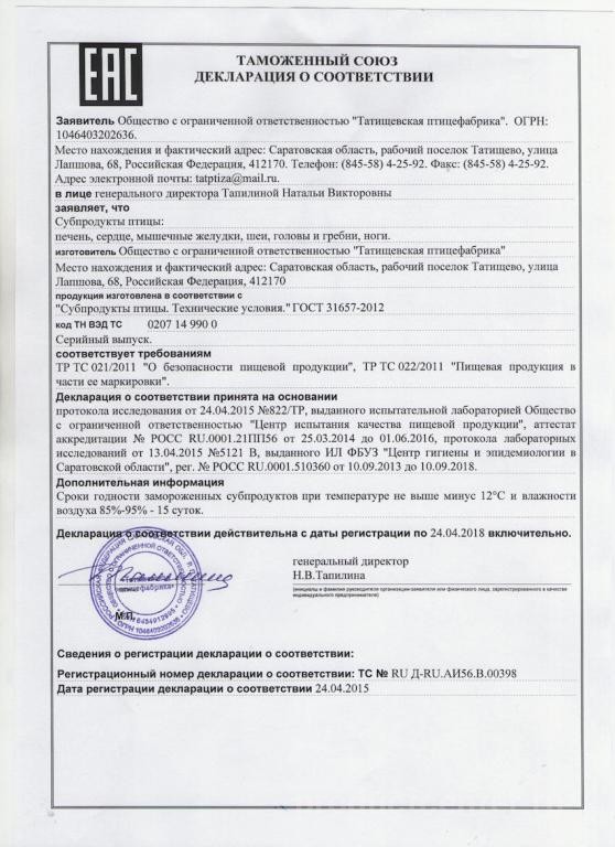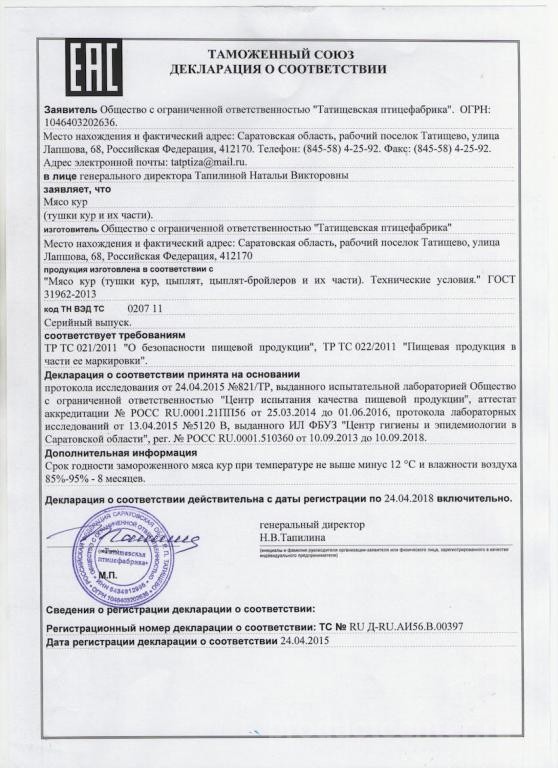 Птицефабрика производит мясо птицы и полуфабрикаты.