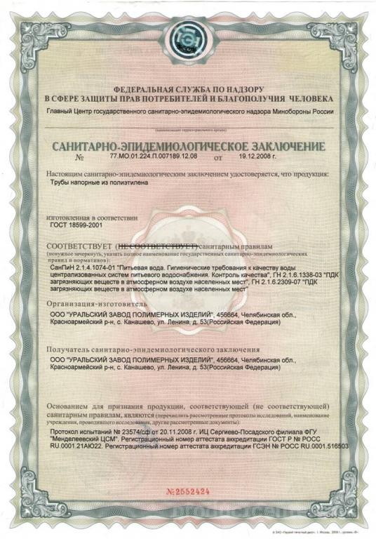 Предприятие производит/реализует полиэтиленовые трубы, товары для водопровода, канализации.
