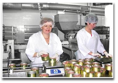 Компания производит мясные и рыбные консервы.
